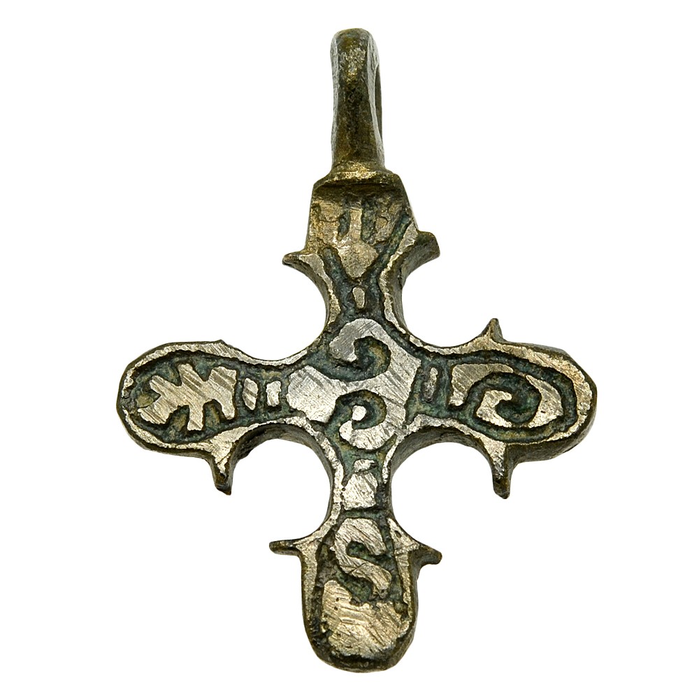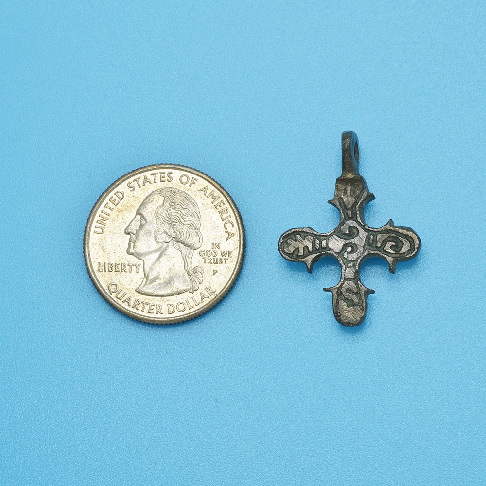 Over the centuries, the Byzantines, who still referred to themselves as Romans, fought to shield Europe from Muslim expansion and they also preserved much of the literary works and scientific knowledge of ancient Greece and Rome. The Empire was one of the most powerful economic, cultural and military forces in Europe and Asia Minor, existing for more than 1,000 years, until 1453. This one-of-a-kind bronze cross was surely worn by an Eastern Roman citizen as a statement of faith during this amazing age of early Christendom.