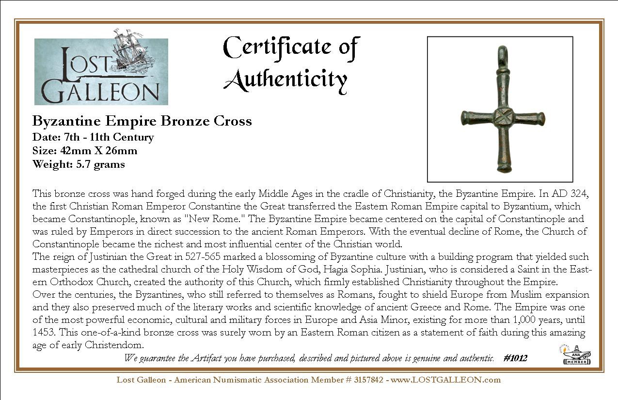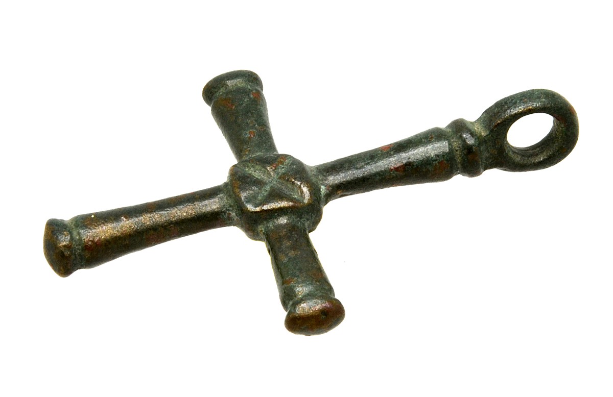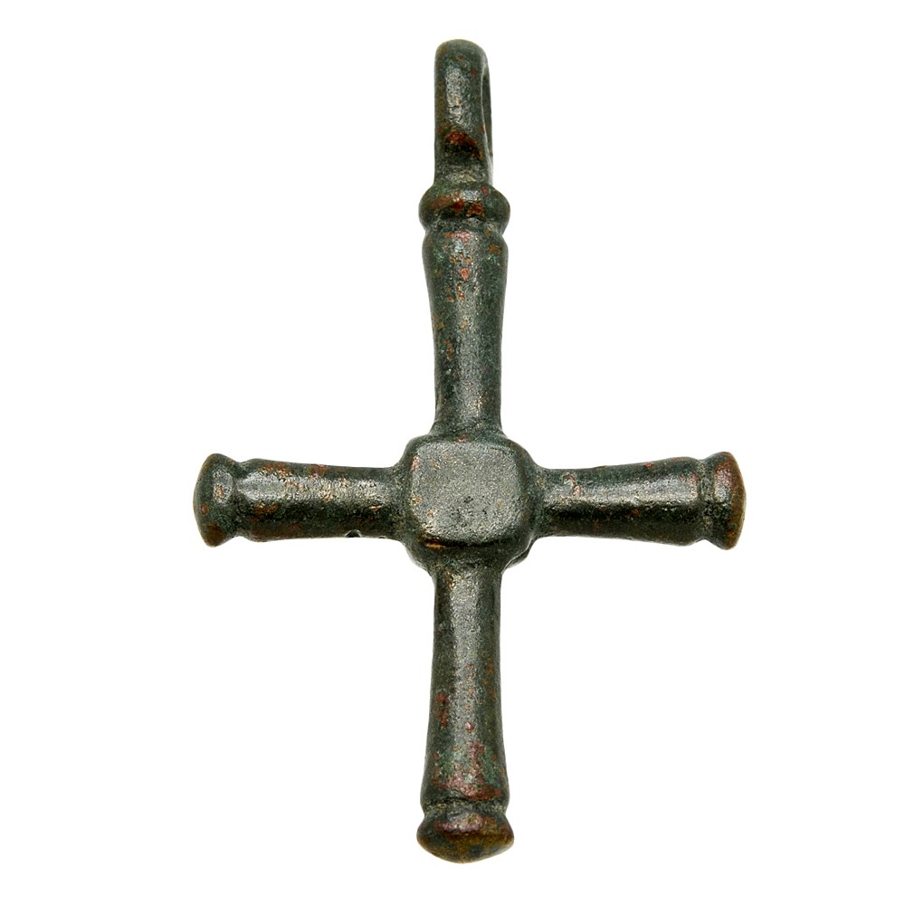 Over the centuries, the Byzantines, who still referred to themselves as Romans, fought to shield Europe from Muslim expansion and they also preserved much of the literary works and scientific knowledge of ancient Greece and Rome. The Empire was one of the most powerful economic, cultural and military forces in Europe and Asia Minor, existing for more than 1,000 years, until 1453. This one-of-a-kind bronze cross was surely worn by an Eastern Roman citizen as a statement of faith during this amazing age of early Christendom.