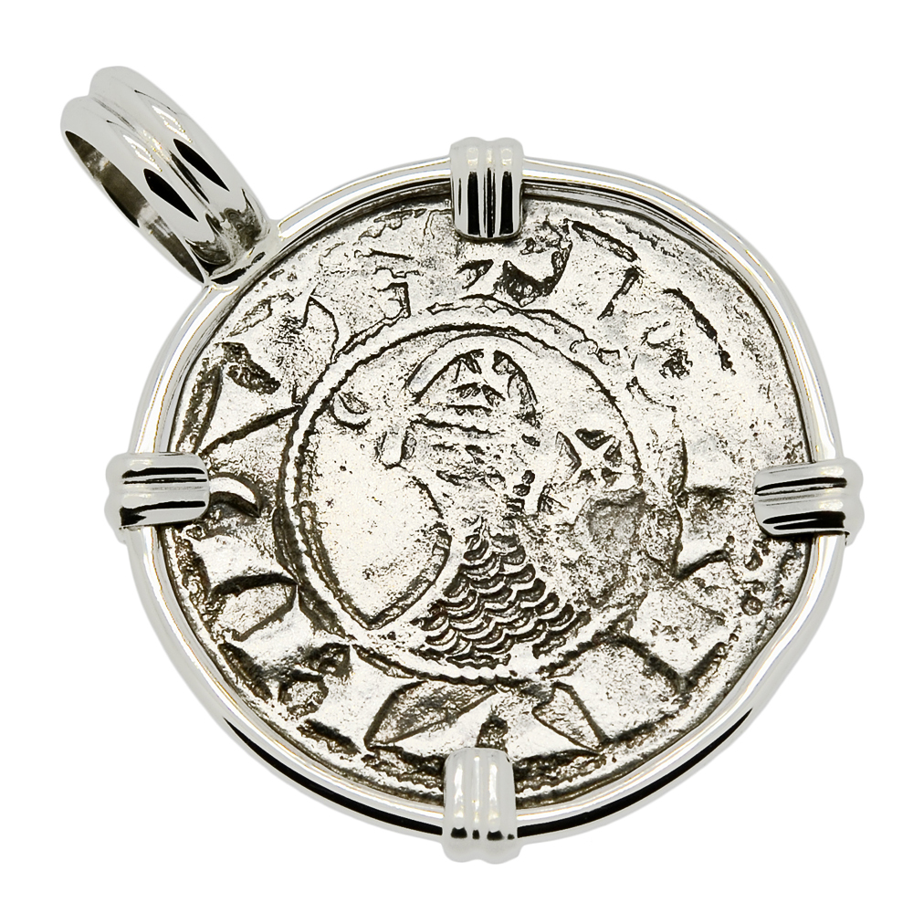 • Silver Denier Coin in 14k White Gold Pendant, Weight 2.2g