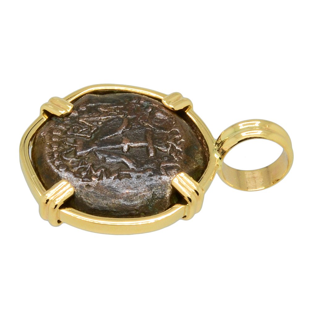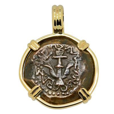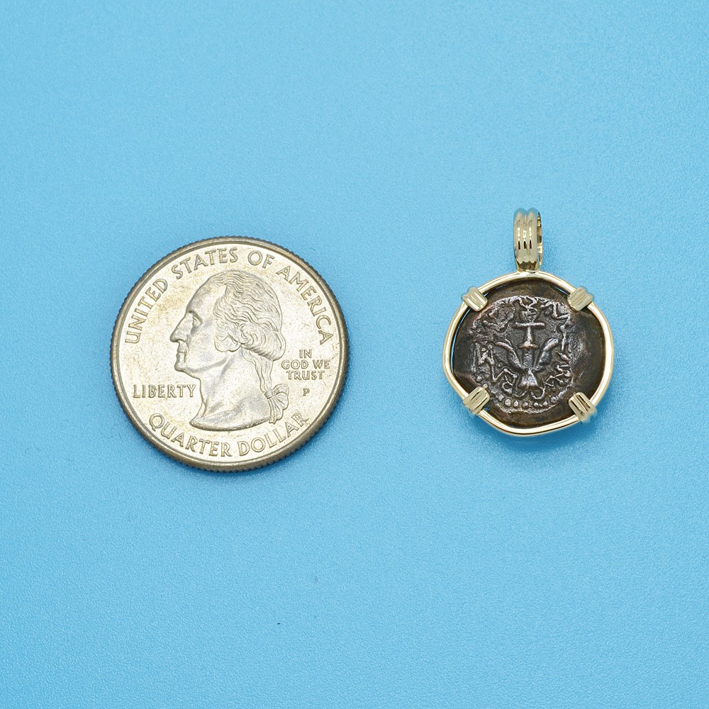 • Bronze Prutah Coin in 14k Gold Pendant, Weight 4.6g