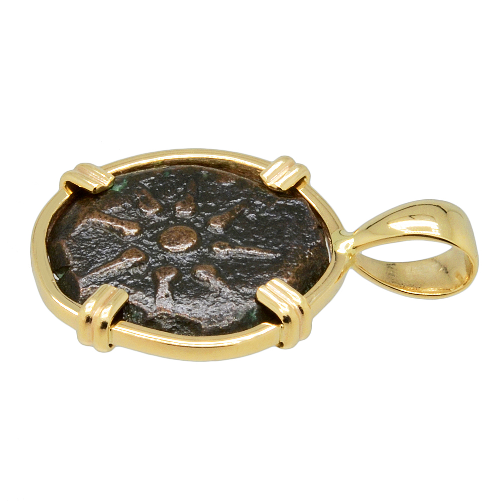 • Bronze Prutah Coin in 14k Gold Pendant, Weight 3.5g