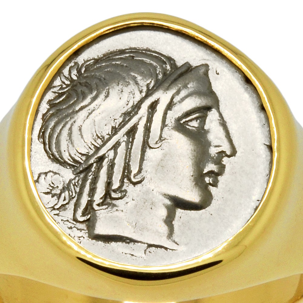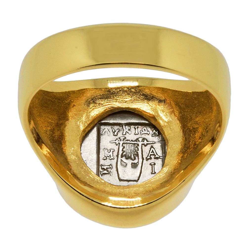 • Silver Hemidrachm Coin in 14k Gold Men's Ring, Weight 12.85g