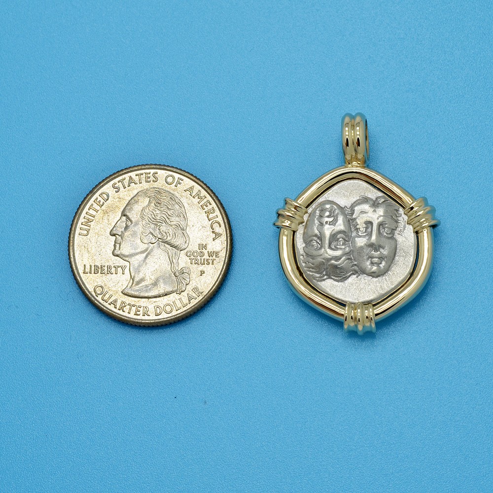 To this day it is still a mystery as to what the inverted faces on this ancient Greek coin from Istros signifies. The predominant theory is that it represents the Dioscuri and either the rising and setting sun, or two branches of the Danube River. The Dioscuri is the classical mythological name for the twin heroes Castor and Pollux. They were famous warriors and devoted brothers, Pollux renowned as a boxer and Castor as a horseman. The Dioscuri were regarded as helpers of mankind and held to be patrons of travelers and of sailors in particular, who invoked them to seek favorable winds.