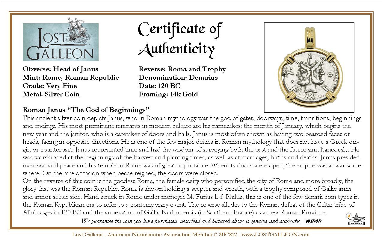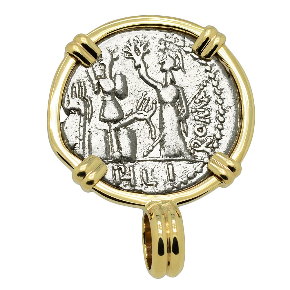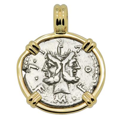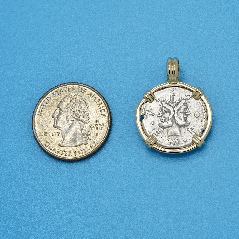 SOLD Janus and Roma Denarius Pendant. Please Explore Our Roman Pendants For Similar Items.