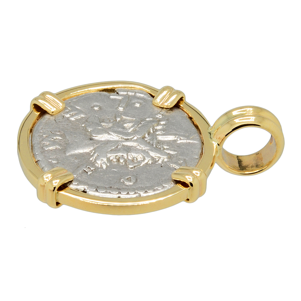 • Silver Denarius Coin in 14k Gold Pendant, Weight 6.8g