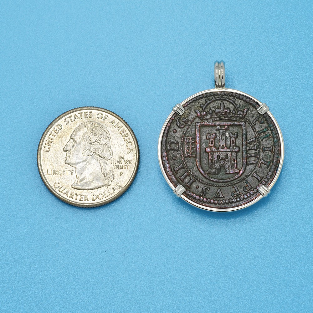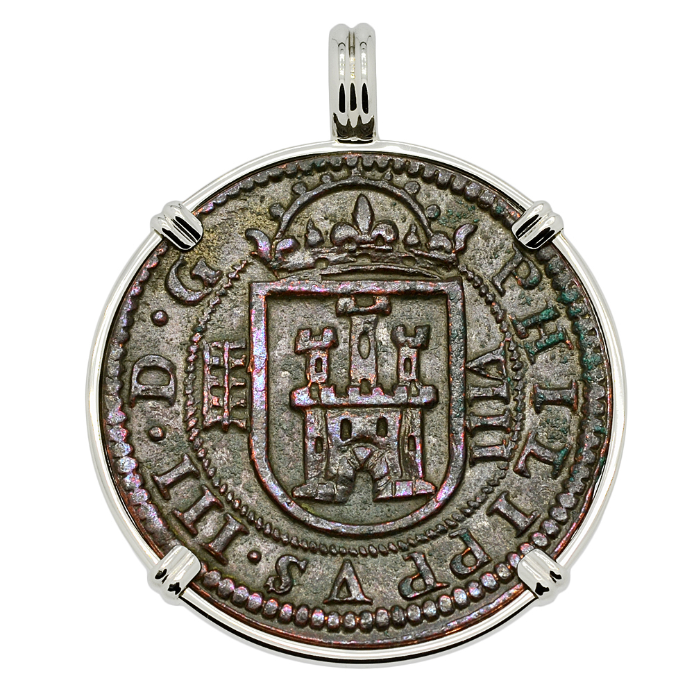 With the discovery of untold riches that were mined in the Americas, the Spanish and their mighty galleon fleets were the premier supplier of gold and silver coins for the world. This vastly increased the shipping trade and made many merchants wealthy, both in Spain and in the colonies. However, even the smallest silver one real coins were too large for most common transactions such as buying food or clothing. So the Spanish minted the copper maravedi in denominations of 8, 4, 2, and 1, which were valued at 34 maravedis equal to one silver real. A typical sailor was paid around 1,000 maravedis per month. Spanish coins that circulated in this adventurous age are all unique and each is a one-of-a-kind piece of history.