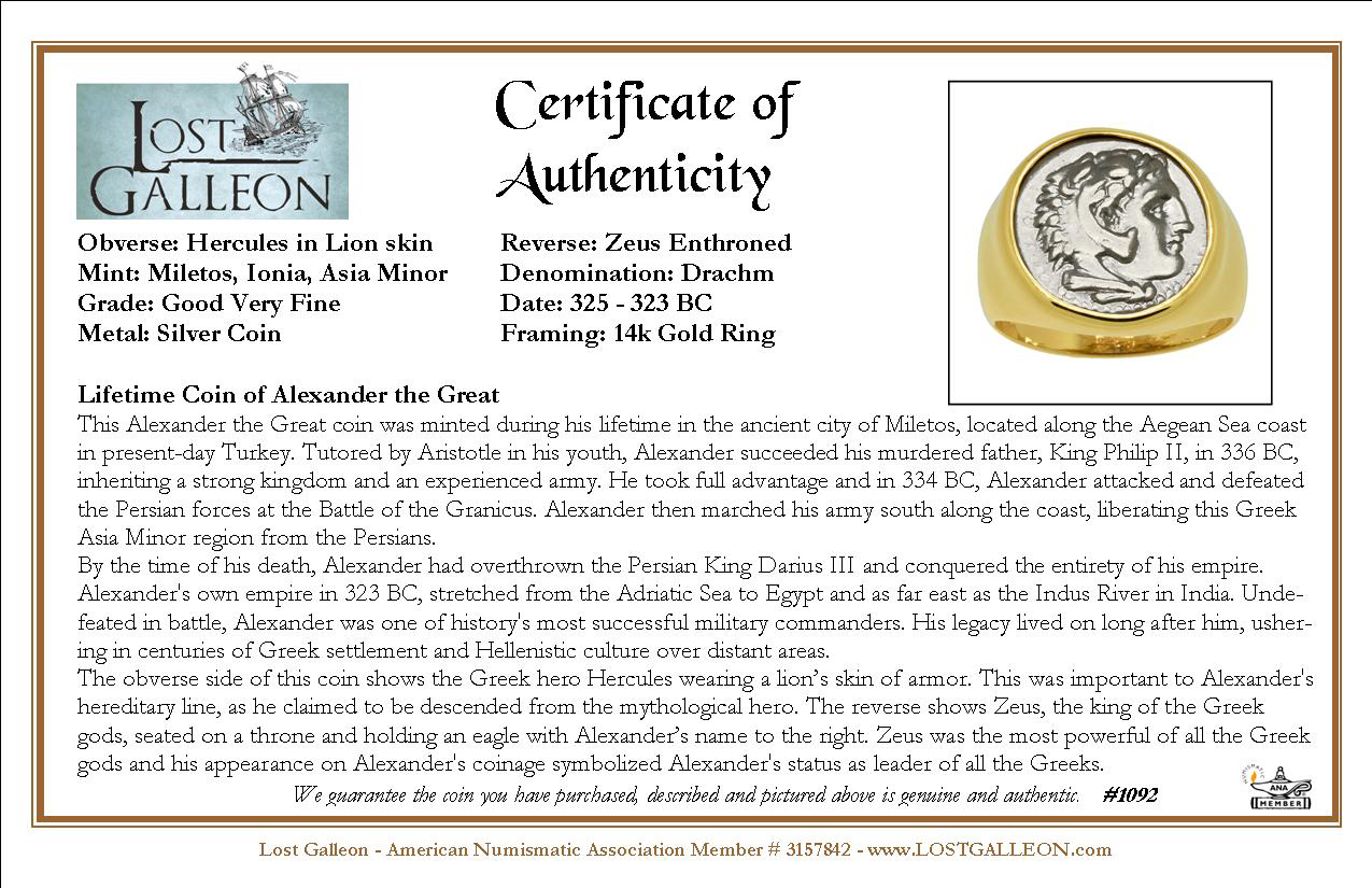 SOLD Alexander the Great Drachm Men's Ring. Please Explore Our Men's Rings For Similar Items.