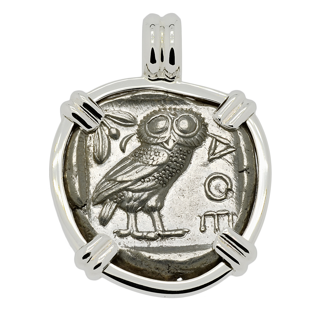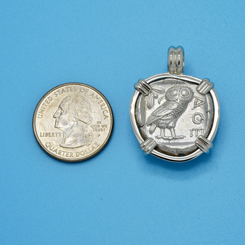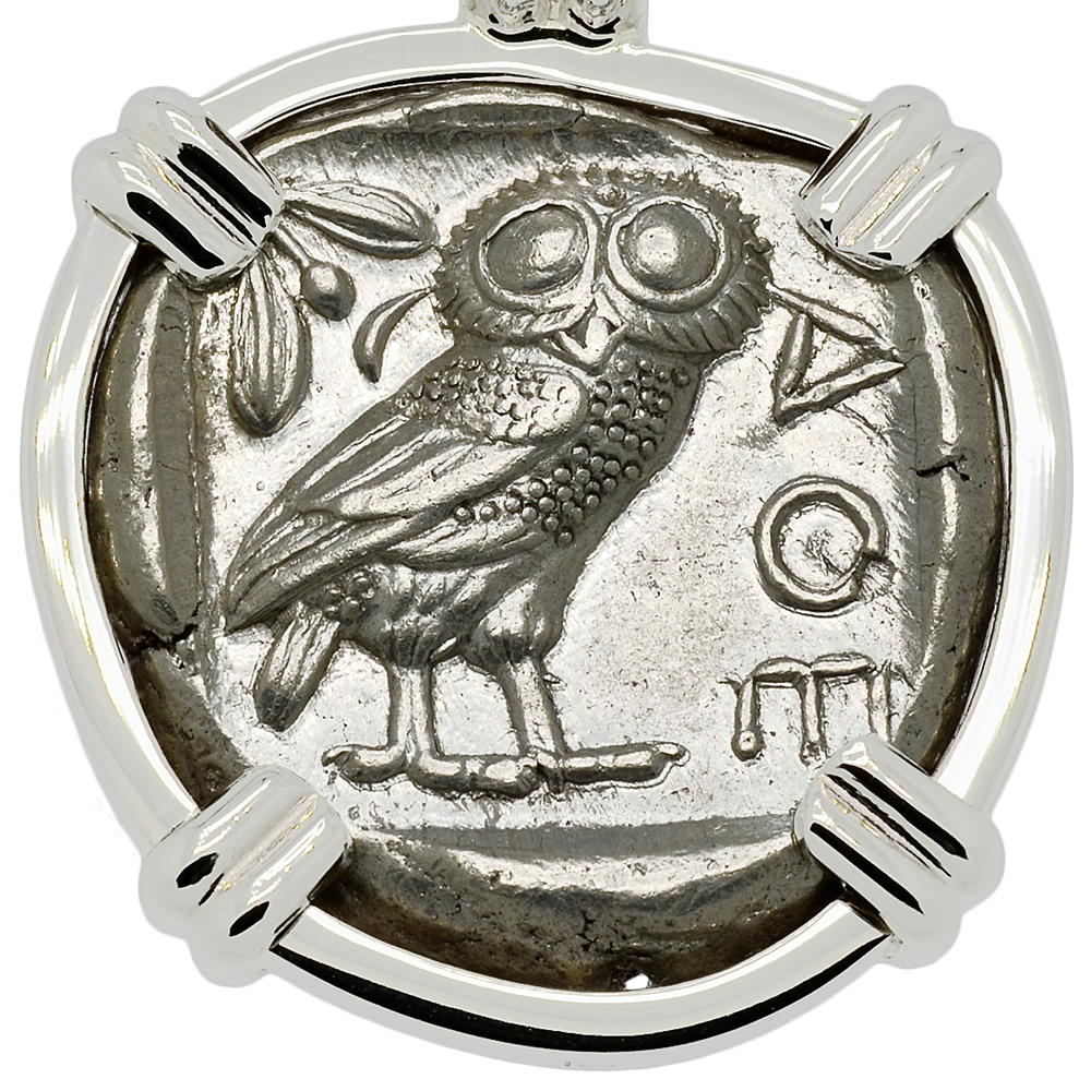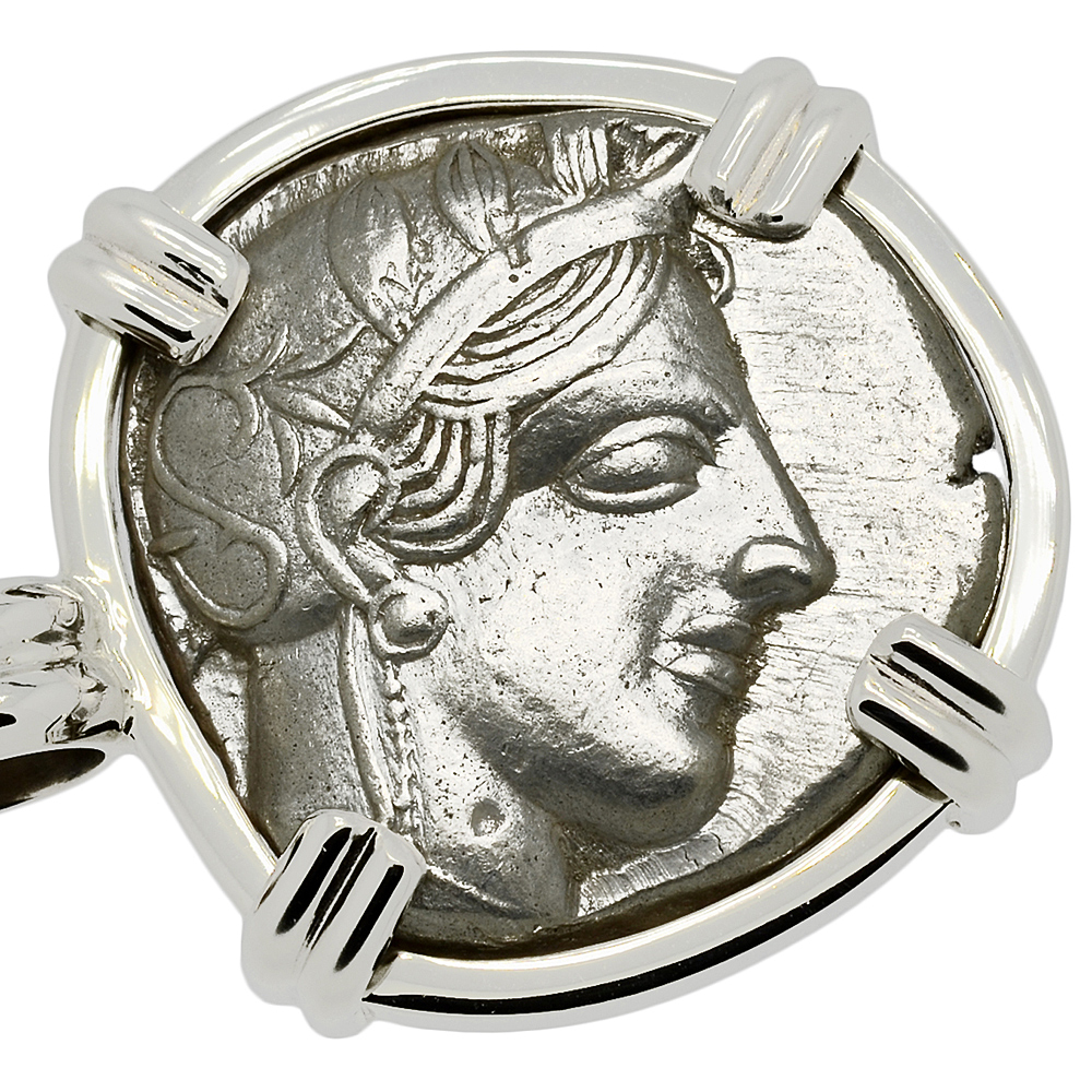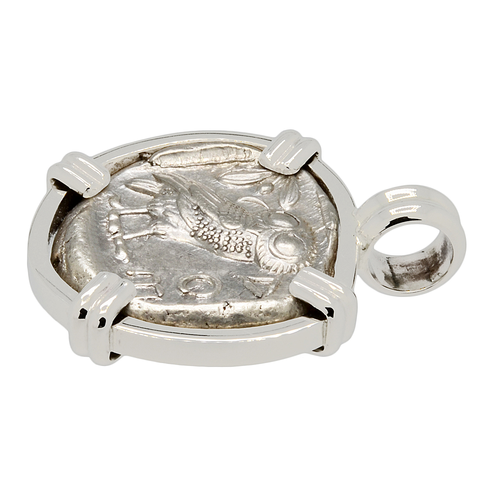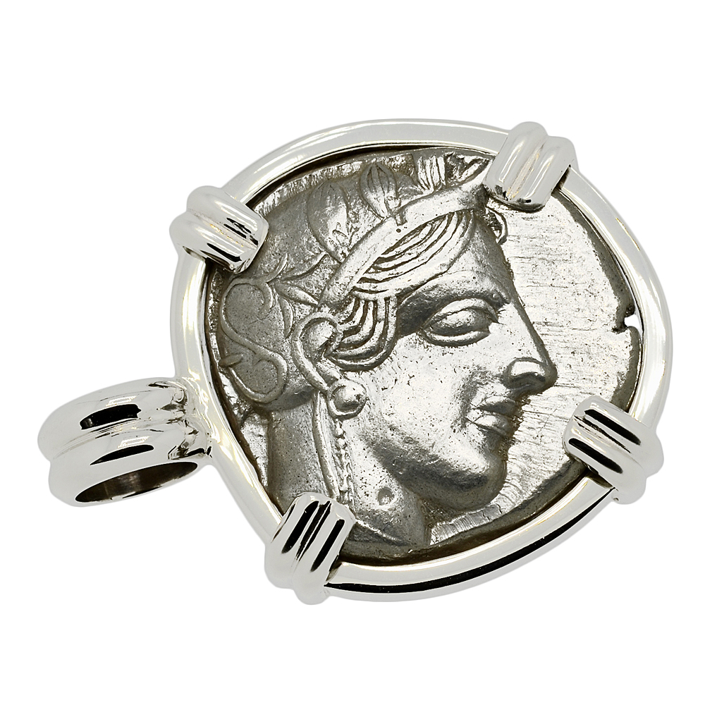 • Silver Tetradrachm Coin in 14k White Gold Pendant, Weight 24.7g
