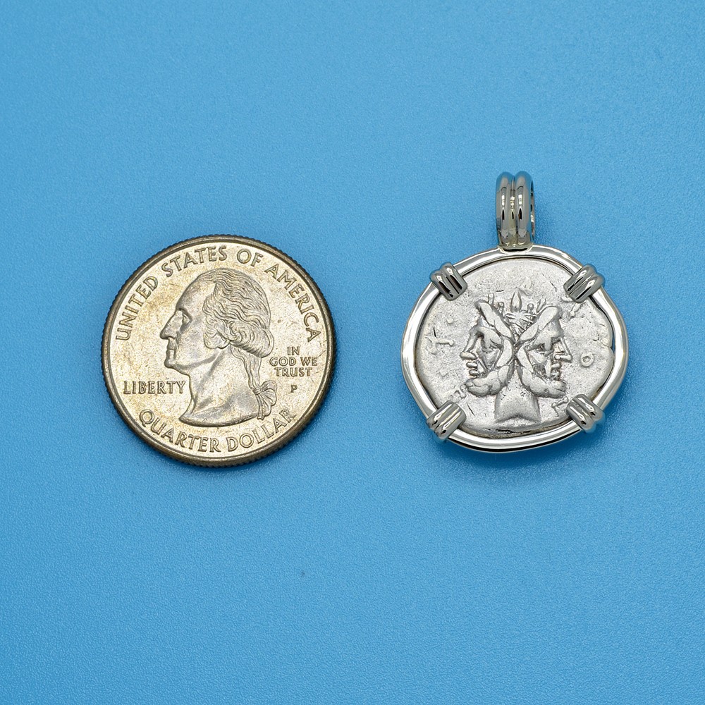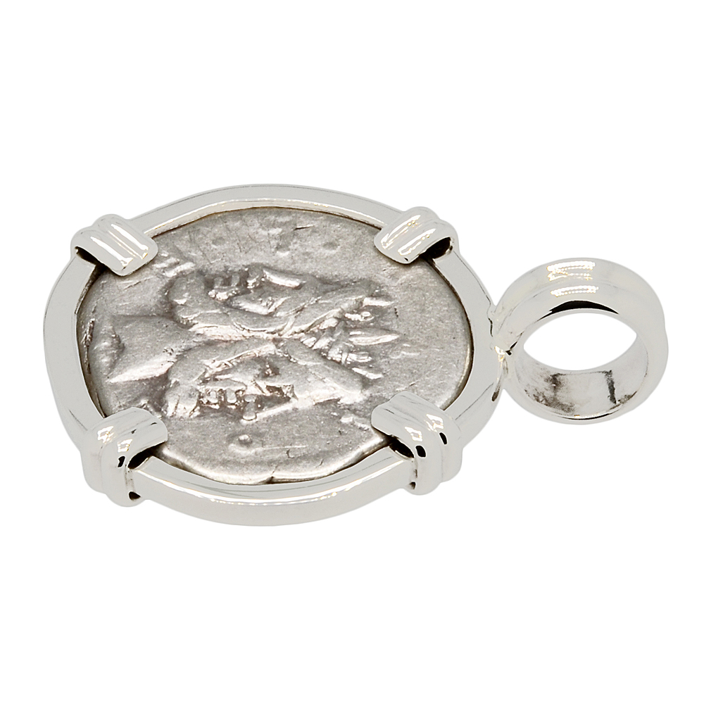 • Silver Denarius Coin in 14k White Gold Pendant, Weight 7.15g