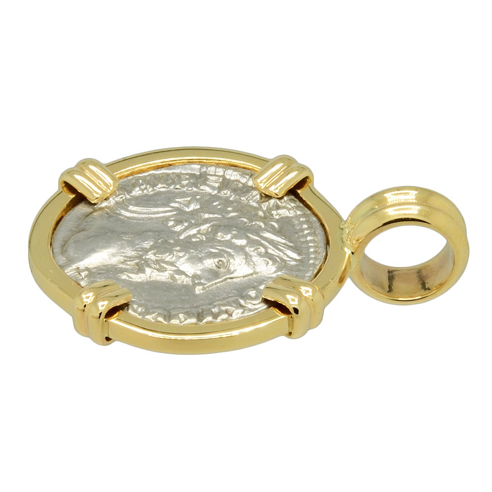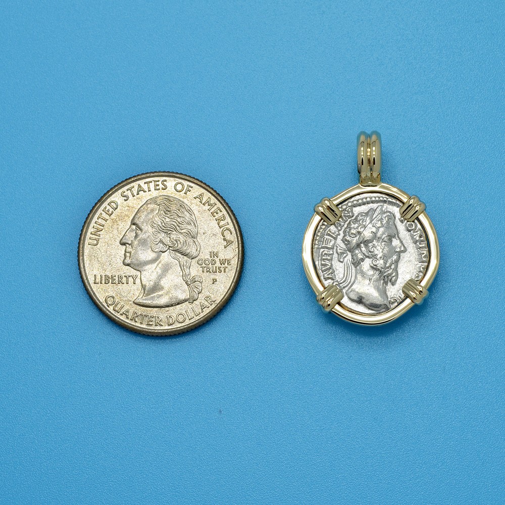 This denarius coin was minted in Rome during the rule of Marcus Aurelius, who was the Roman Emperor from AD 161 to 180. Marcus is widely seen as the last of the Five Good Emperors and the final emperor during the Pax Romana, a 207-year period of peace and prosperity. However, even during this golden age, hostilities still persisted on several fronts. In 161, the Parthians invaded the Roman province of Syria and the client state of Armenia. The Romans eventually defeated the Parthians and in 166 sacked their capital, Ctesiphon, in Mesopotamia. In 169, Marcus set out from Rome to command his army against a series of incursions by Germanic tribes known as the Marcomannic Wars. In 180, after 11 years of war, and on the verge of total victory over the Barbarians, Marcus died of natural causes in Vienna.