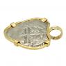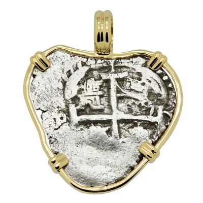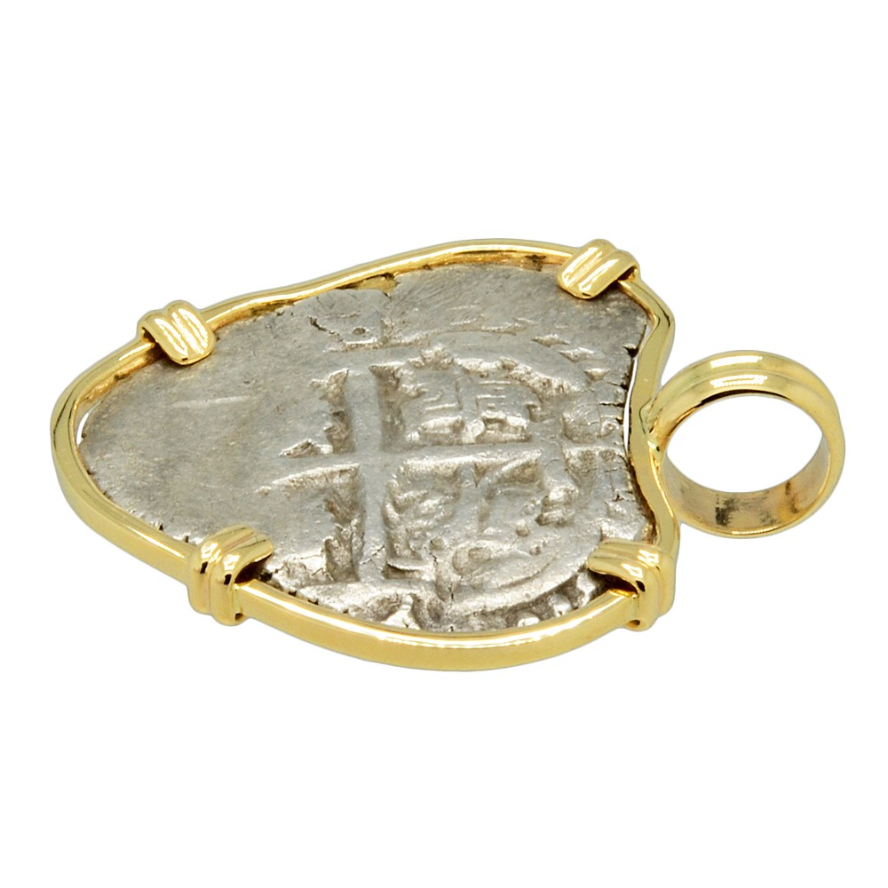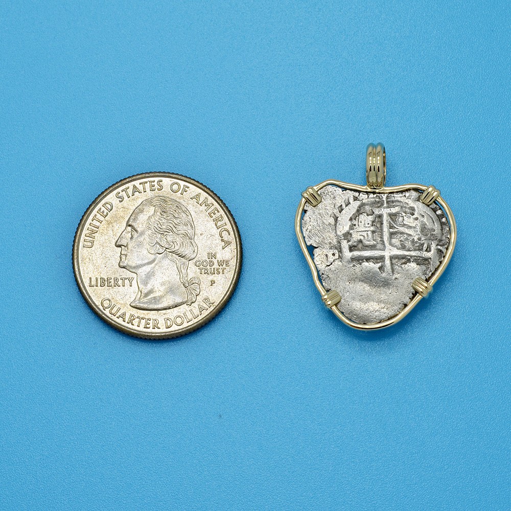 This is a genuine Spanish silver coin that was minted in the colonial South American mint of Potosi, Peru. In 1533, four decades after Columbus landed in the New World, Spanish conquistador Francisco Pizarro conquered the Inca Empire in Peru. Soon after, high in the Andes Mountains at Potosi, the Spanish discovered the richest silver deposits in the world and in 1575, they opened the Potosi mint.