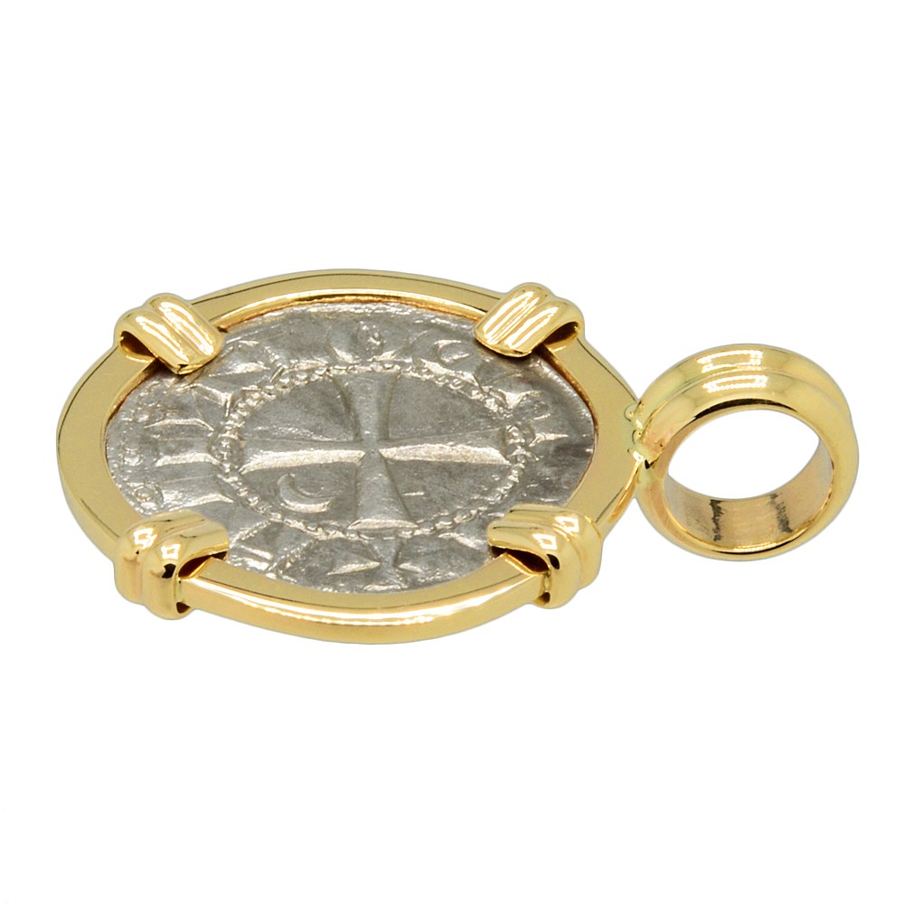 This coin was minted during the 12th century in the Crusader state of Antioch, which was located near the northeastern edge of the Mediterranean Sea in modern-day Turkey. During ancient times, Antioch was known as the cradle of Christianity and the city was on a strategic route to Palestine. As the Western World recovered from the Dark Ages, Crusaders from Europe massed their armies in an effort to recapture Jerusalem and the Holy Land from Muslim rule. The Crusades were fought over a period of nearly 200 years, between 1095 and 1291.