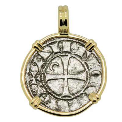 This coin was minted during the 12th century in the Crusader state of Antioch, which was located near the northeastern edge of the Mediterranean Sea in modern-day Turkey. During ancient times, Antioch was known as the cradle of Christianity and the city was on a strategic route to Palestine. As the Western World recovered from the Dark Ages, Crusaders from Europe massed their armies in an effort to recapture Jerusalem and the Holy Land from Muslim rule. The Crusades were fought over a period of nearly 200 years, between 1095 and 1291.