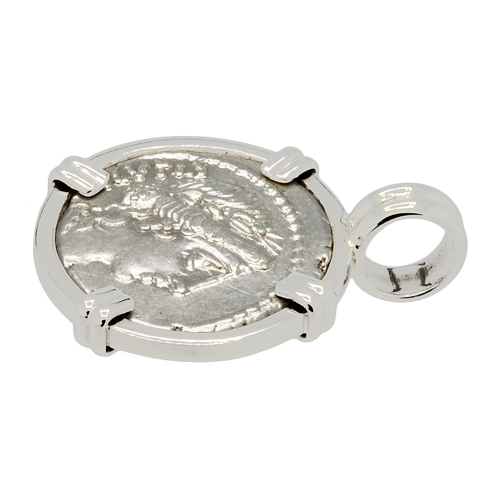 The reverse side of this rare denarius coin depicts Valetudo, the Roman goddess of personal health and a great-granddaughter of the king of the gods Jupiter. Valetudo is leaning on an altar and holding a serpent while gazing into its eyes. The Latin legend MN ACILIVS III VIR VALETV states the moneyers name and Valetudo. Both Salus and Valetudo were commonly depicted with the snake of Asclepius, who was the god of medicine and healing in ancient Greek religion. The rod of Asclepius, a snake-entwined staff, remains a symbol of medicine today.