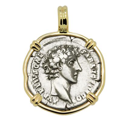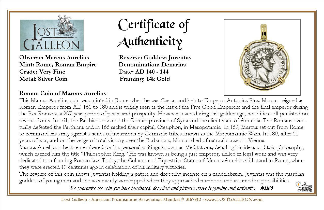 This Marcus Aurelius coin was minted in Rome when he was Caesar and heir to Emperor Antonius Pius. Marcus reigned as Roman Emperor from AD 161 to 180 and is widely seen as the last of the Five Good Emperors and the final emperor during the Pax Romana, a 207-year period of peace and prosperity. However, even during this golden age, hostilities still persisted on several fronts. In 161, the Parthians invaded the Roman province of Syria and the client state of Armenia. The Romans eventually defeated the Parthians and in 166 sacked their capital, Ctesiphon, in Mesopotamia. In 169, Marcus set out from Rome to command his army against a series of incursions by Germanic tribes known as the Marcomannic Wars. In 180, after 11 years of war, and on the verge of total victory over the Barbarians, Marcus died of natural causes in Vienna.