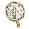 The reverse of this coin shows Juventas holding a patera and dropping incense on a candelabrum. Juventas was the guardian goddess of young men and she was mainly worshipped when they approached manhood and assumed responsibilities.