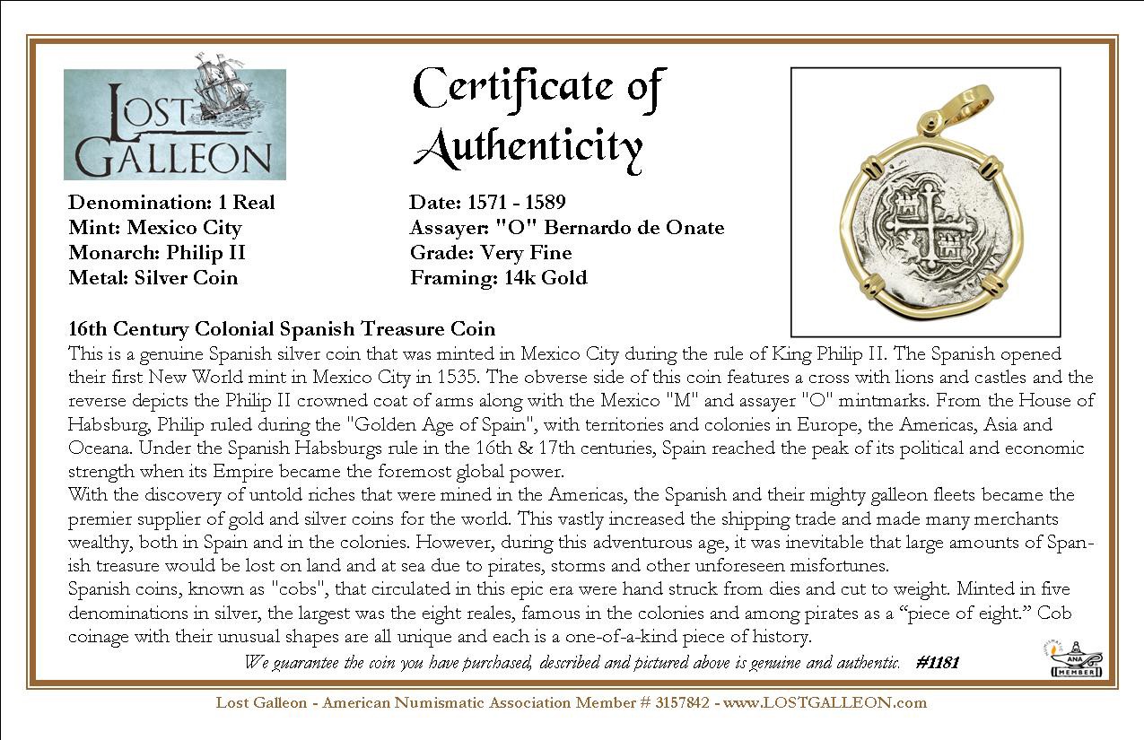 This is a genuine Spanish silver coin that was minted in Mexico City during the rule of King Philip II. The Spanish opened their first New World mint in Mexico City in 1535. The obverse side of this coin features a cross with lions and castles and the reverse depicts the Philip II crowned coat of arms along with the Mexico "M" and assayer "O" mintmarks. From the House of Habsburg, Philip ruled during the "Golden Age of Spain", with territories and colonies in Europe, the Americas, Asia and Oceana. Under the Spanish Habsburgs rule in the 16th & 17th centuries, Spain reached the peak of its political and economic strength when its Empire became the foremost global power.