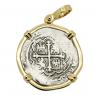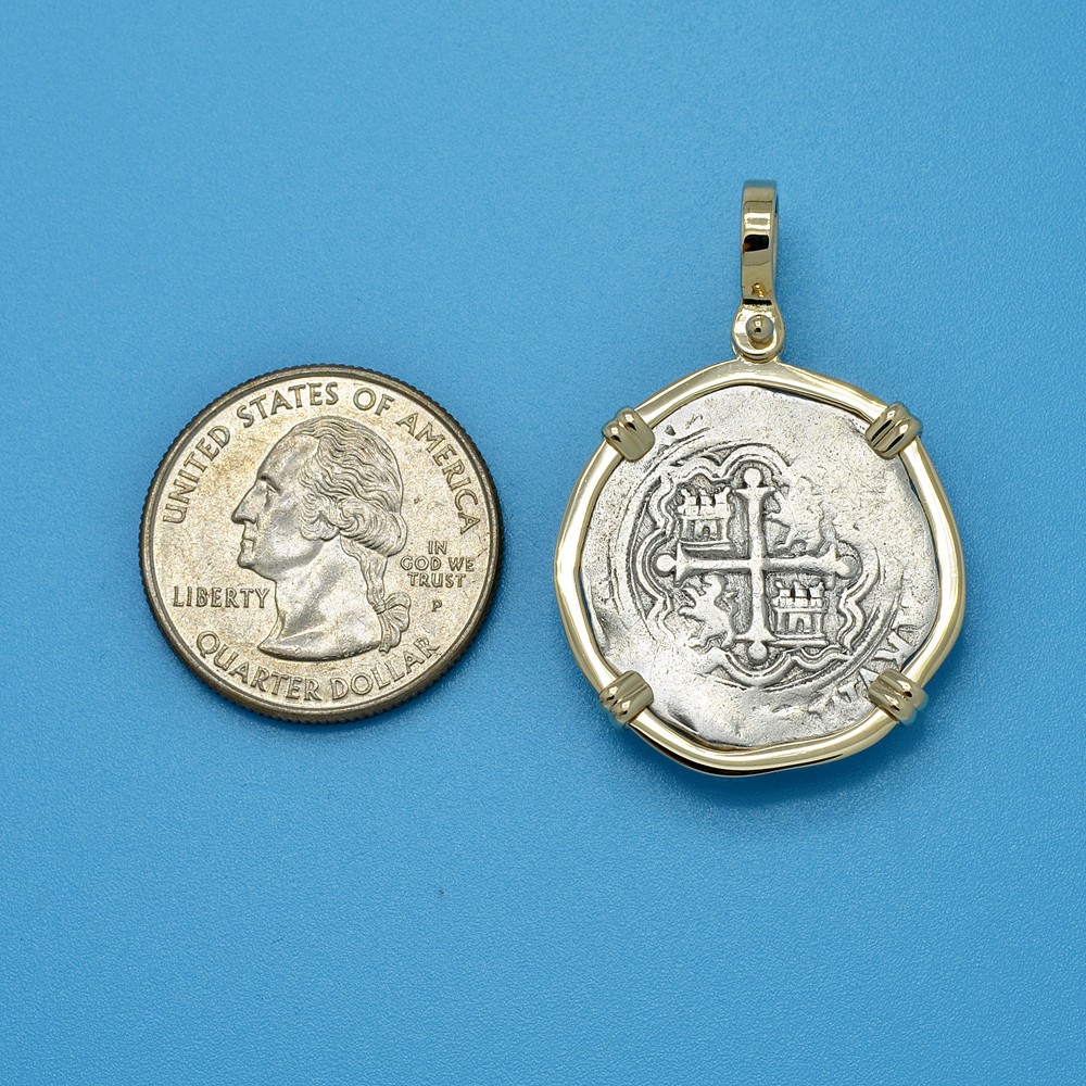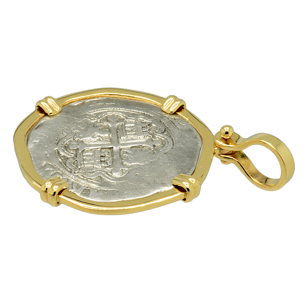 Spanish coins, known as "cobs", that circulated in this epic era were hand struck from dies and cut to weight. Minted in five denominations in silver, the largest was the eight reales, famous in the colonies and among pirates as a “piece of eight.” Cob coinage with their unusual shapes are all unique and each is a one-of-a-kind piece of history.