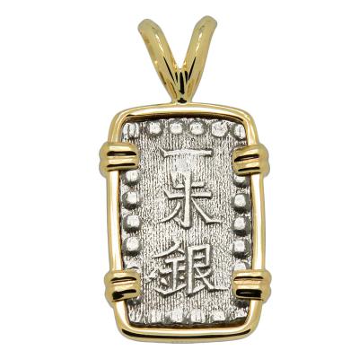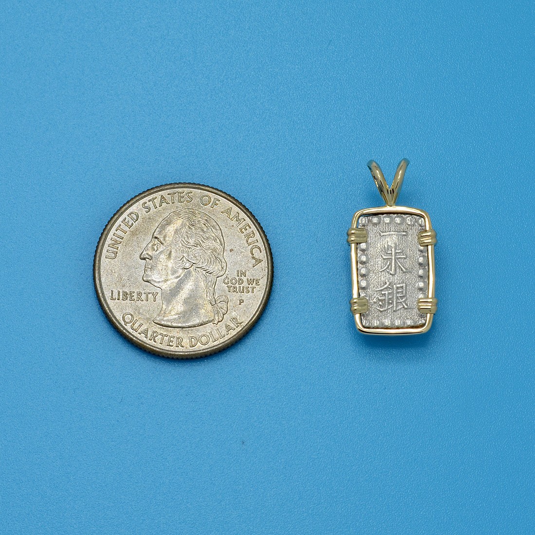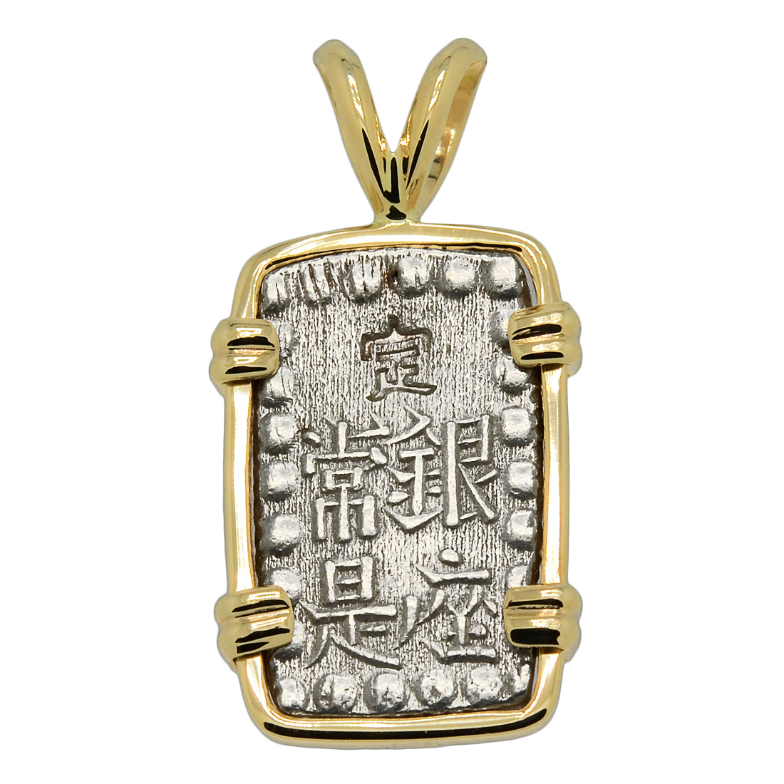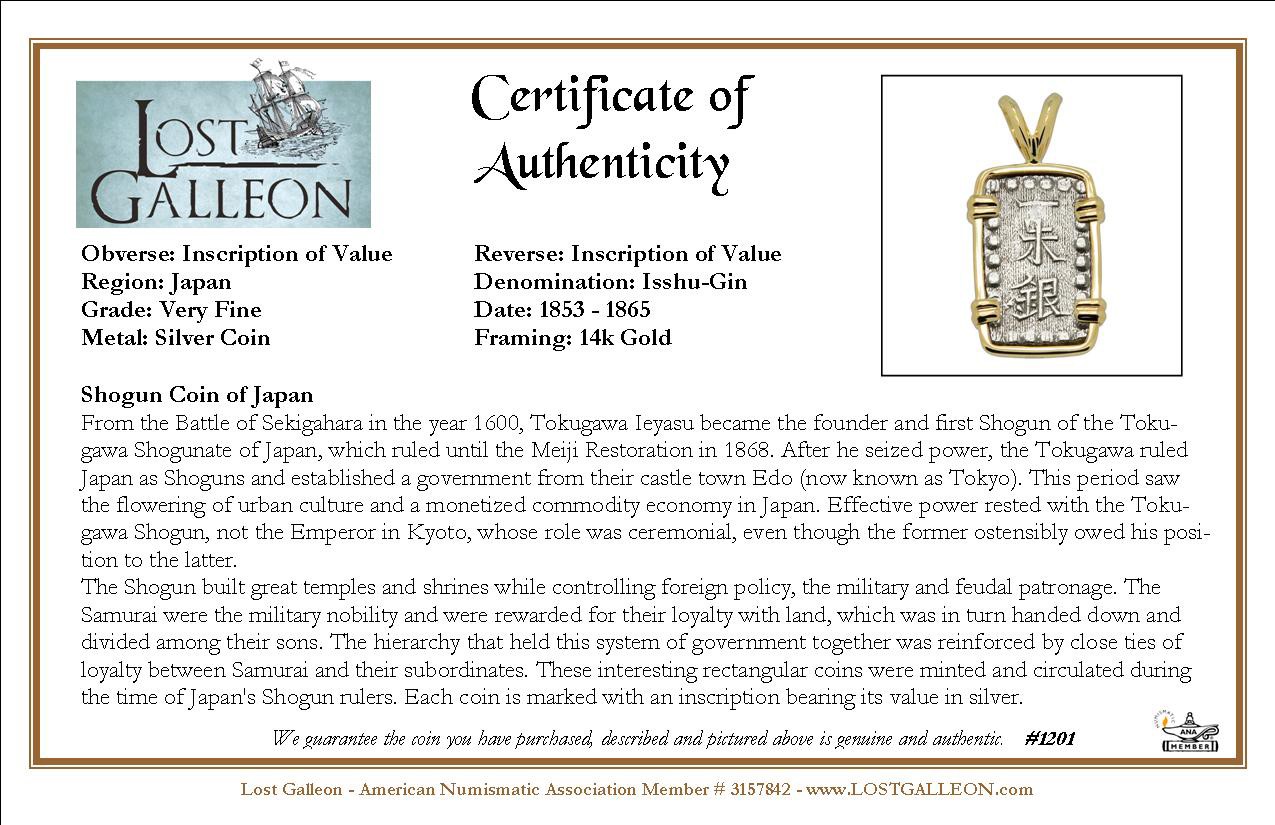 The Shogun built great temples and shrines while controlling foreign policy, the military and feudal patronage. The Samurai were the military nobility and were rewarded for their loyalty with land, which was in turn handed down and divided among their sons. The hierarchy that held this system of government together was reinforced by close ties of loyalty between Samurai and their subordinates. These interesting rectangular coins were minted and circulated during the time of Japan's Shogun rulers. Each coin is marked with an inscription bearing its value in silver.