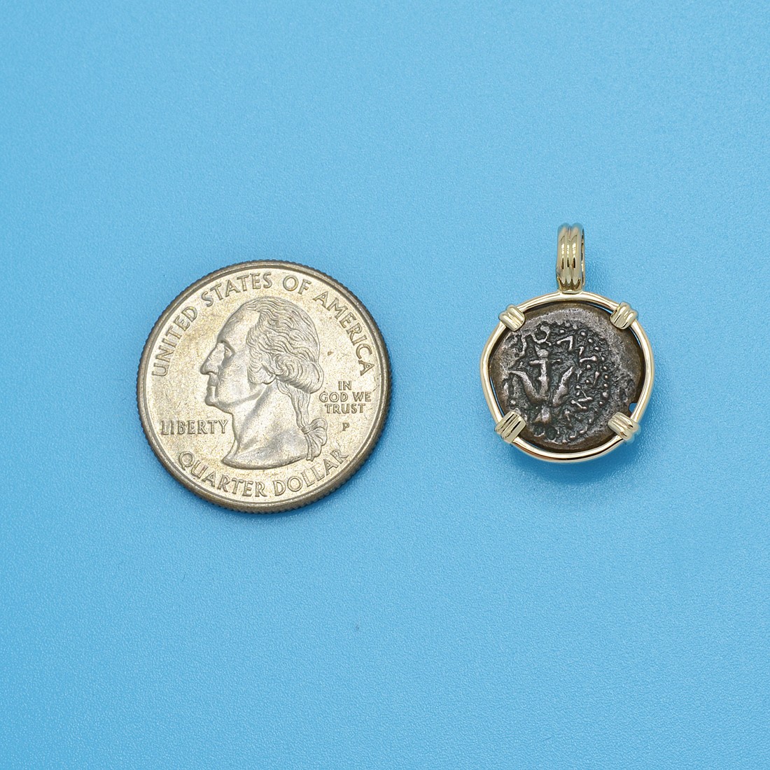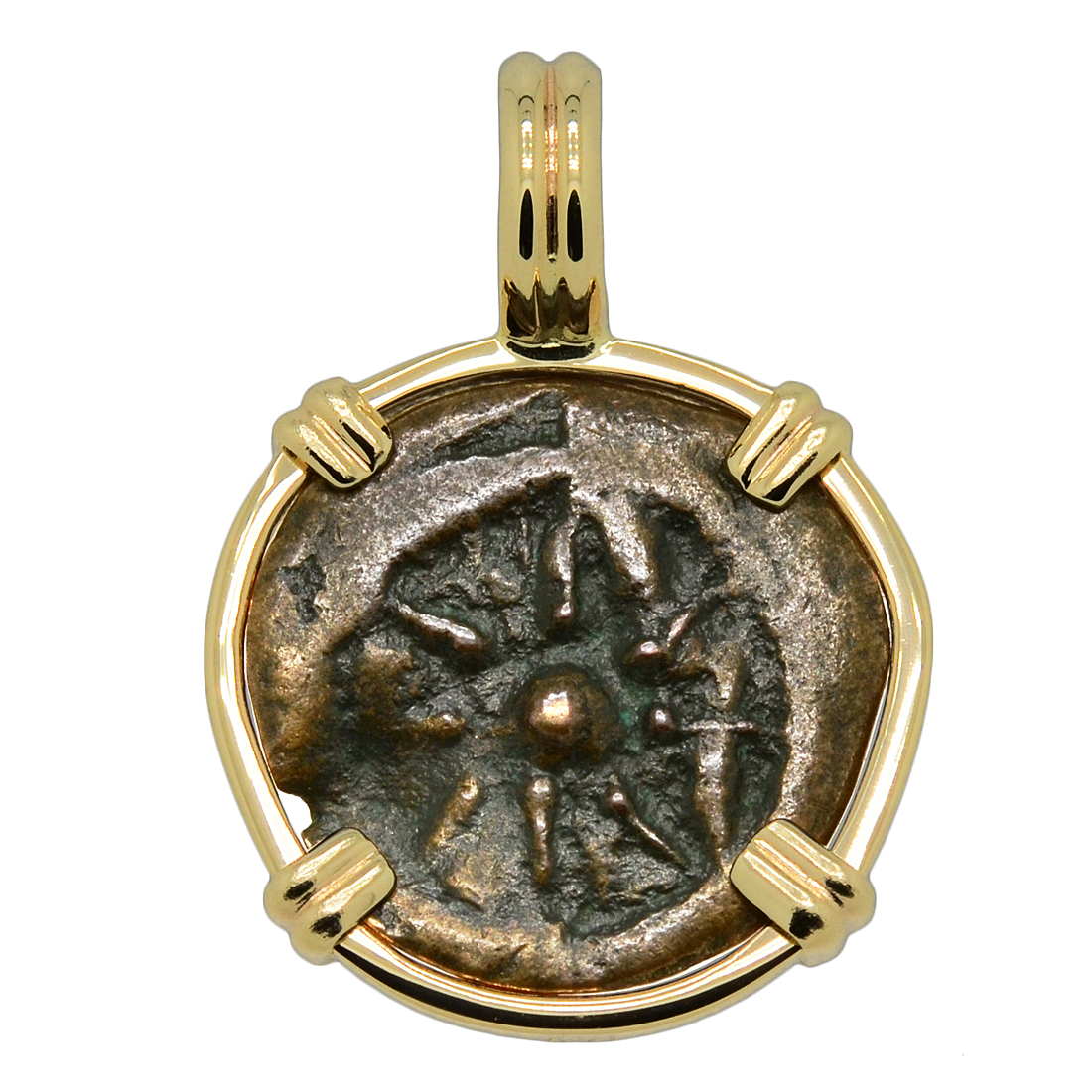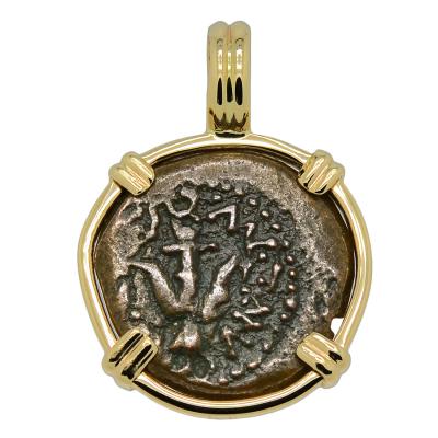 • Bronze Prutah Coin in 14k Gold Pendant, Weight 3.2g