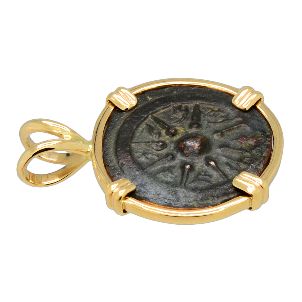 • Bronze Prutah Coin in 14k Gold Pendant, Weight 3.8g