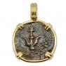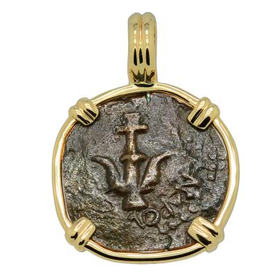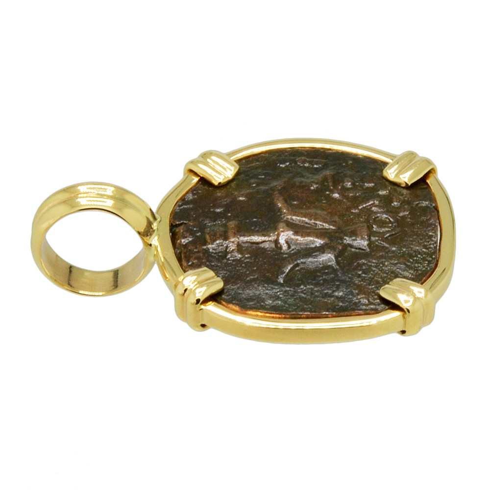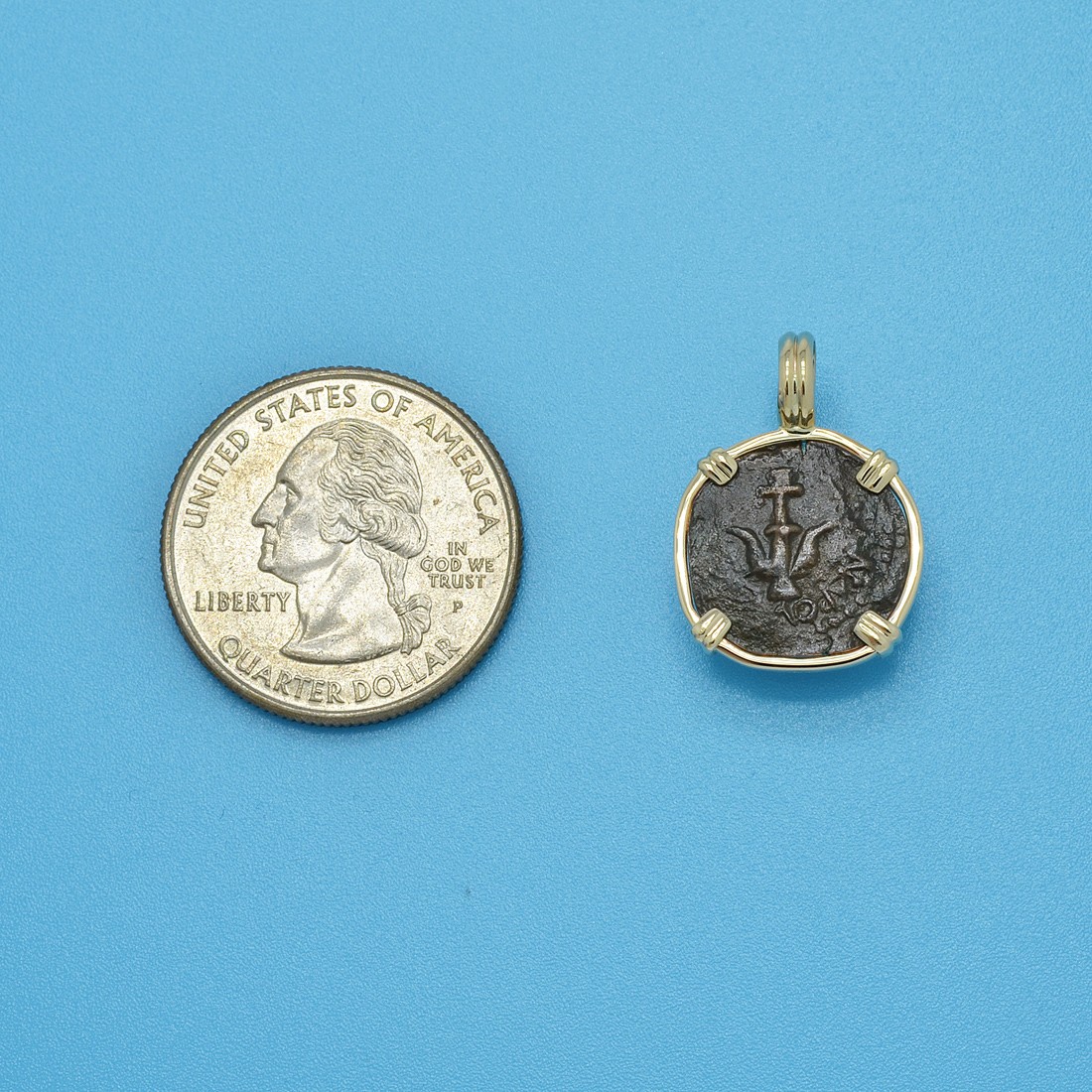 • Bronze Prutah Coin in 14k Gold Pendant, Weight 3.2g