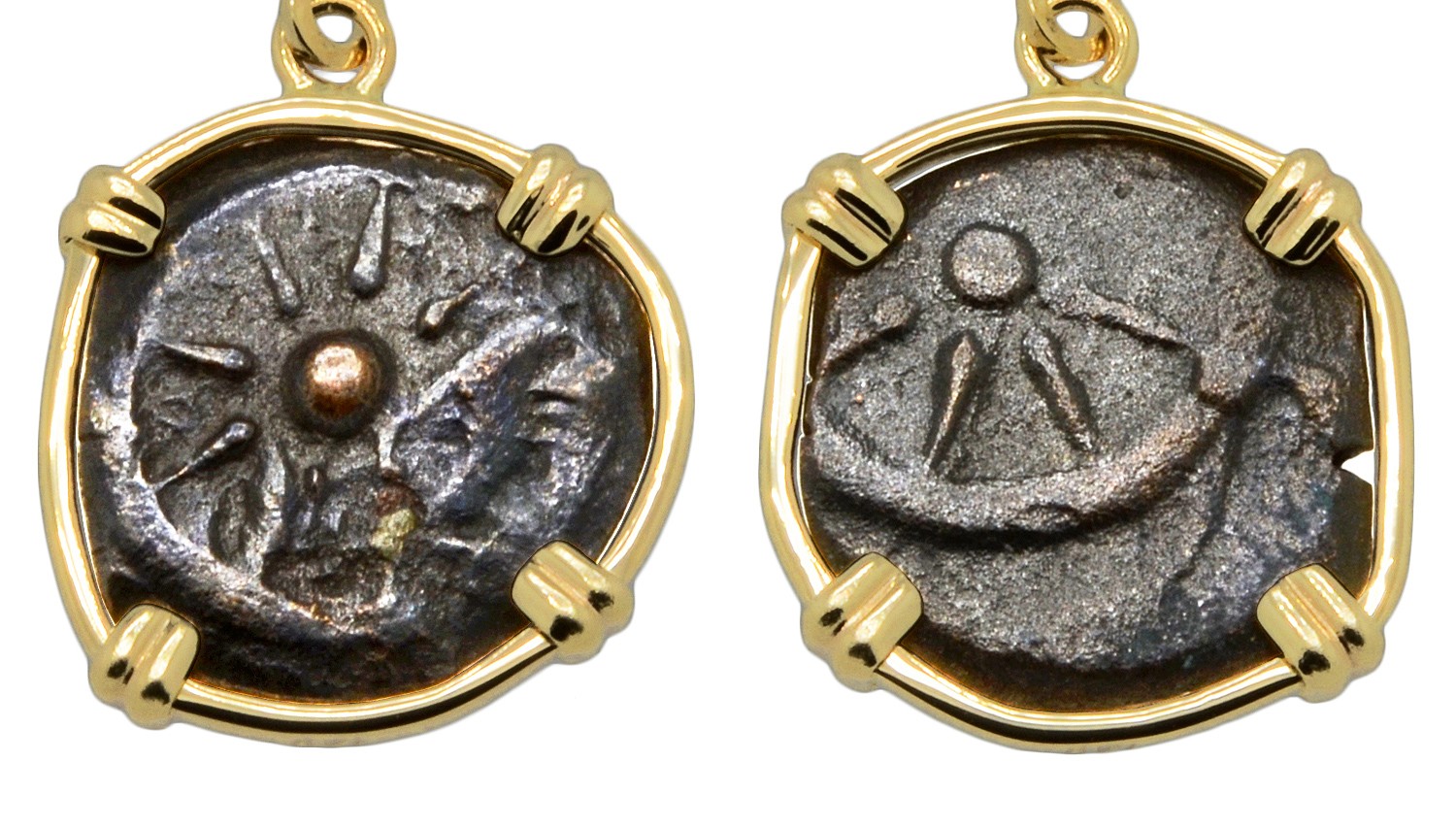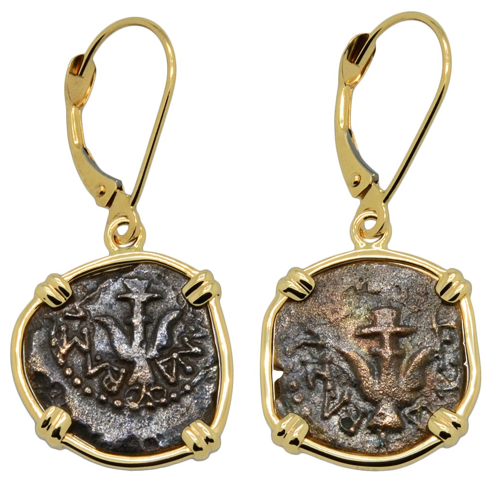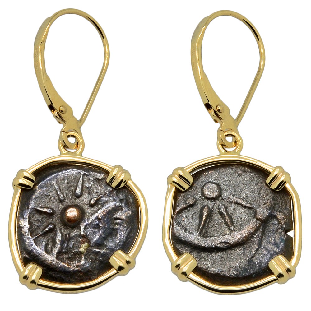 • Bronze Prutah Coins in 14k Gold Earrings, Weight: 2.65g (each)
