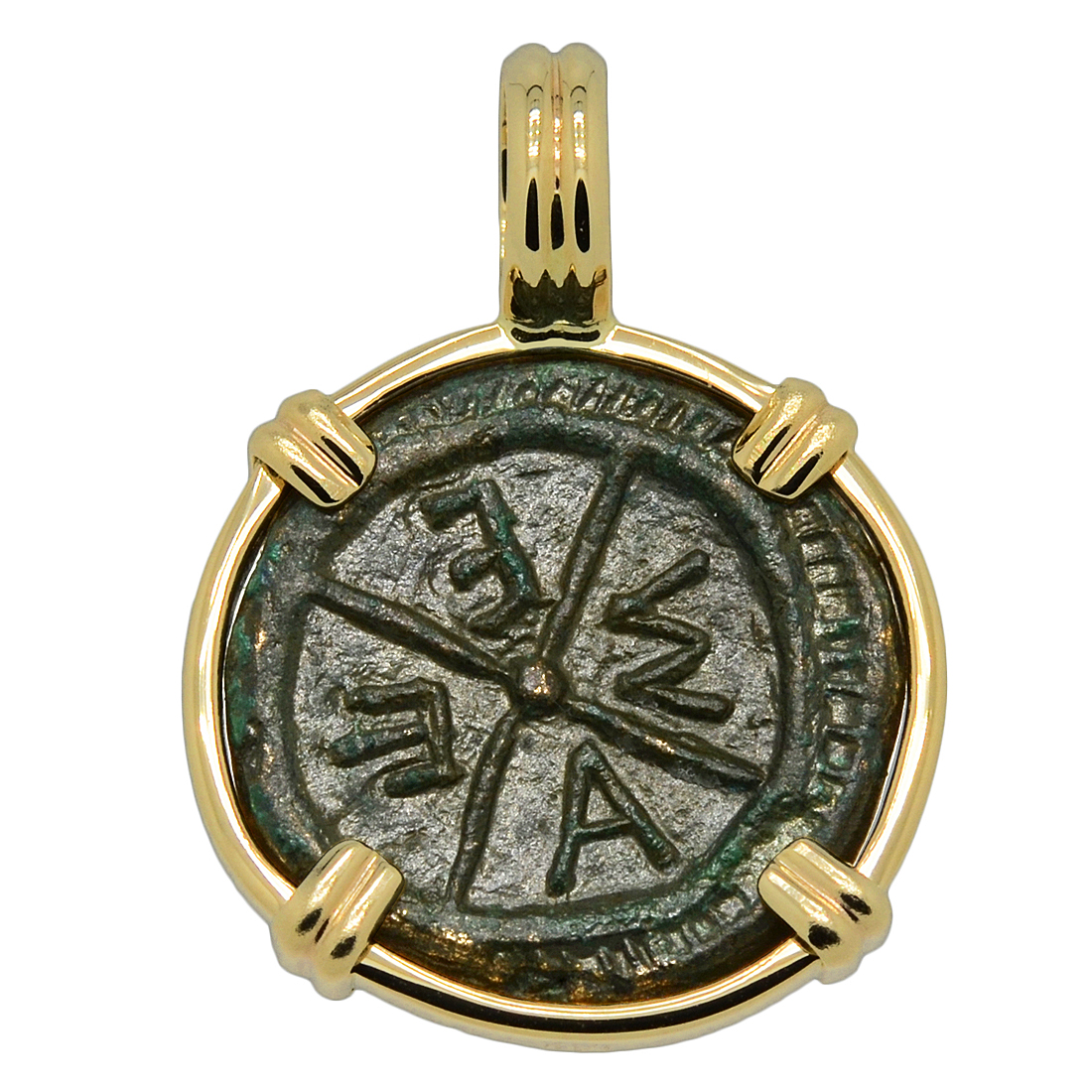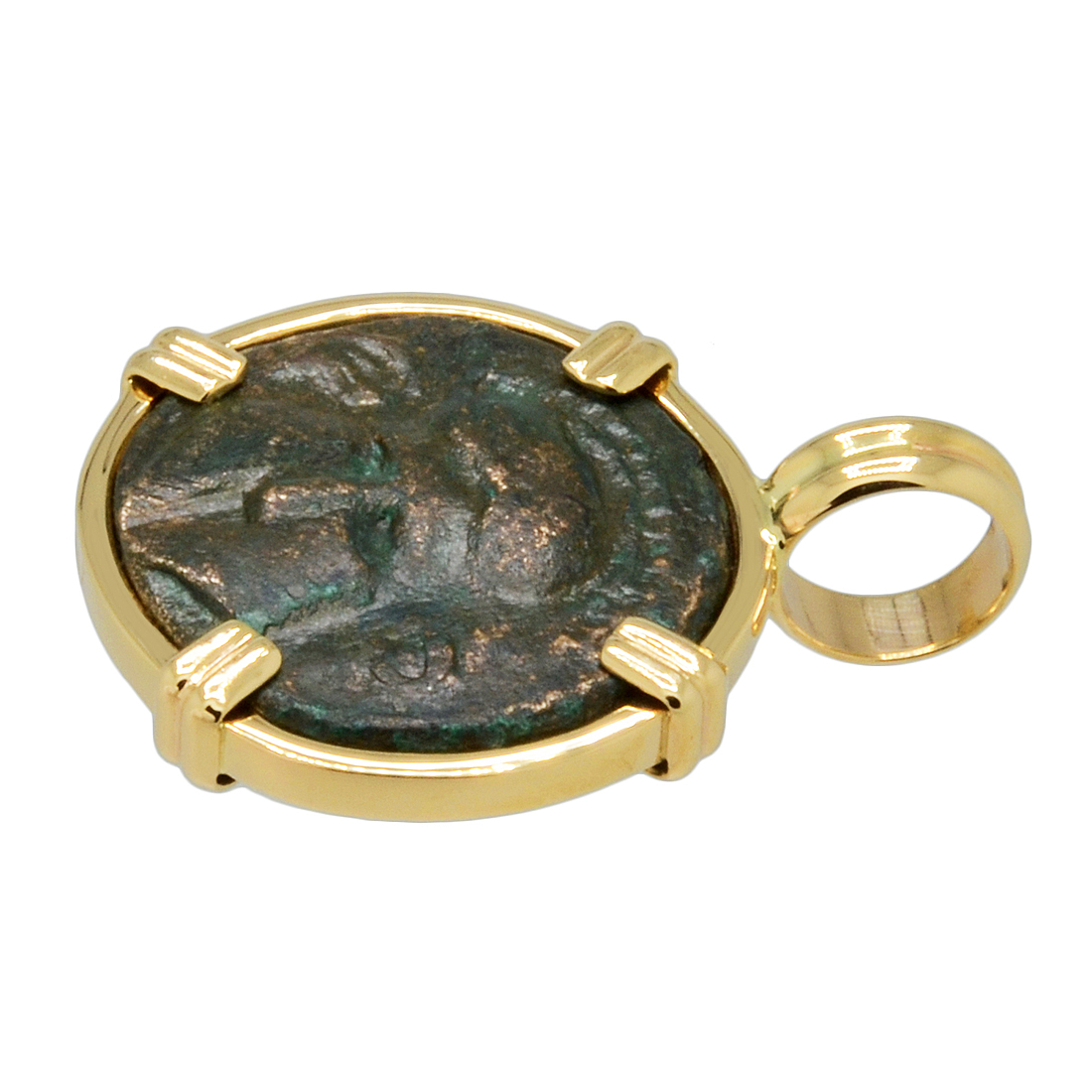 • Bronze Coin in 14k Gold Pendant, Weight 5g
