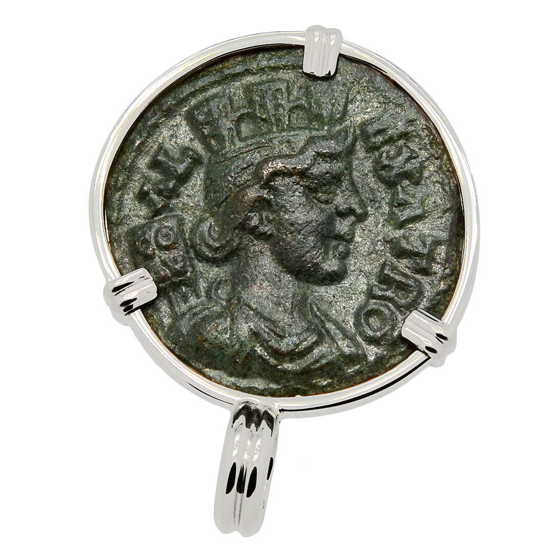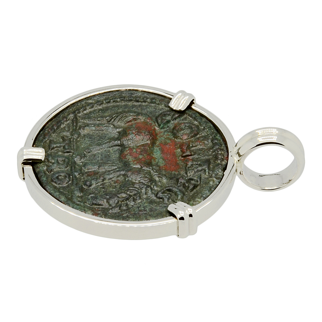 • Bronze Coin in 14k White Gold Pendant, Weight 7.3g