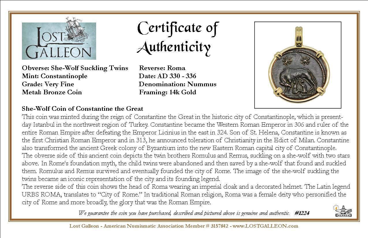 This coin was minted during the reign of Constantine the Great in the historic city of Constantinople, which is present-day Istanbul in the northwest region of Turkey. Constantine became the Western Roman Emperor in 306 and ruler of the entire Roman Empire after defeating the Emperor Licinius in the east in 324. Son of St. Helena, Constantine is known as the first Christian Roman Emperor and in 313, he announced toleration of Christianity in the Edict of Milan. Constantine also transformed the ancient Greek colony of Byzantium into the new Eastern Roman capital city of Constantinople.