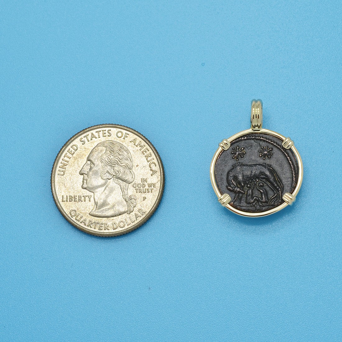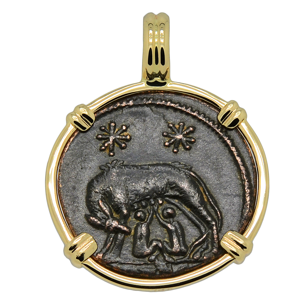 SOLD She Wolf and Roma Nummus Pendant. Please Explore Our Roman Pendants For Similar Items.