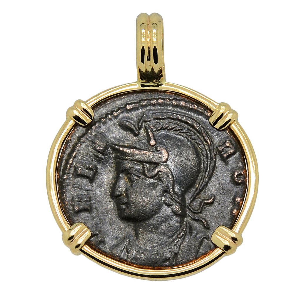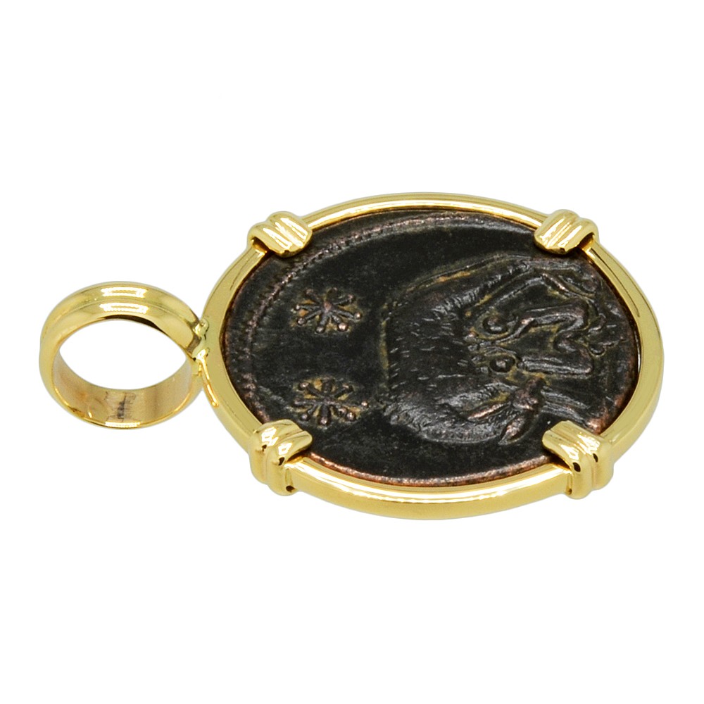 • Bronze Nummus Coin in 14k Gold Pendant, Weight 3.6g