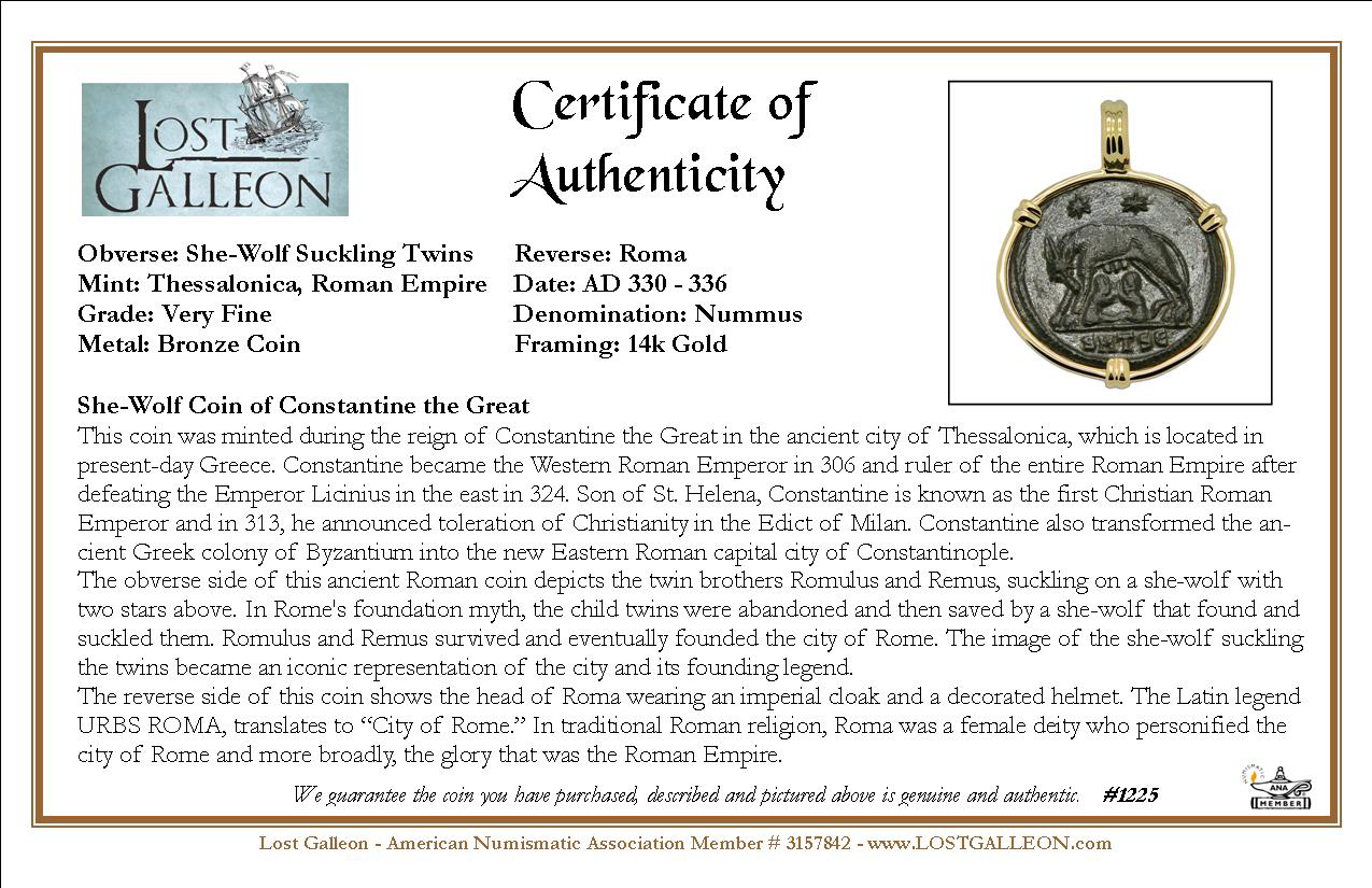 This coin was minted during the reign of Constantine the Great in the ancient city of Thessalonica, which is located in present-day Greece. Constantine became the Western Roman Emperor in 306 and ruler of the entire Roman Empire after defeating the Emperor Licinius in the east in 324. Son of St. Helena, Constantine is known as the first Christian Roman Emperor and in 313, he announced toleration of Christianity in the Edict of Milan. Constantine also transformed the ancient Greek colony of Byzantium into the new Eastern Roman capital city of Constantinople.