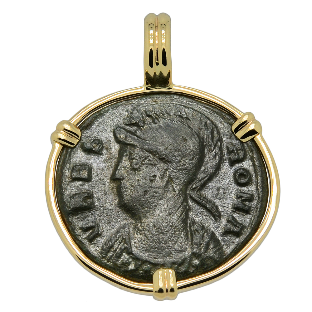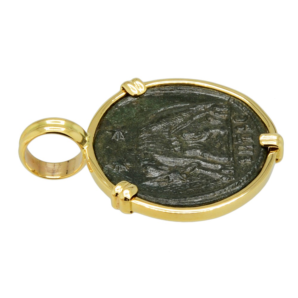 • Bronze Nummus Coin in 14k Gold Pendant, Weight 3.75g