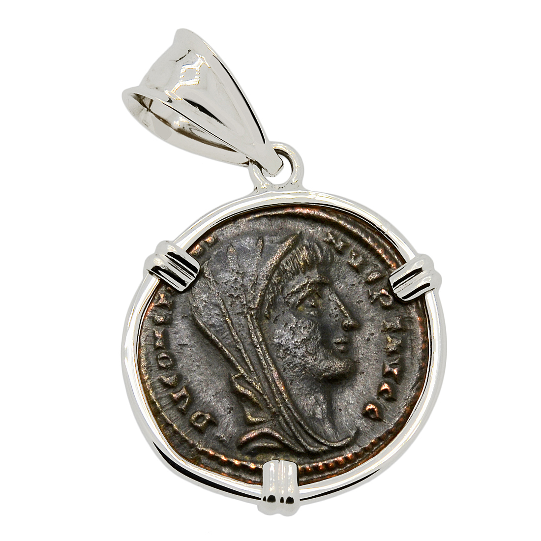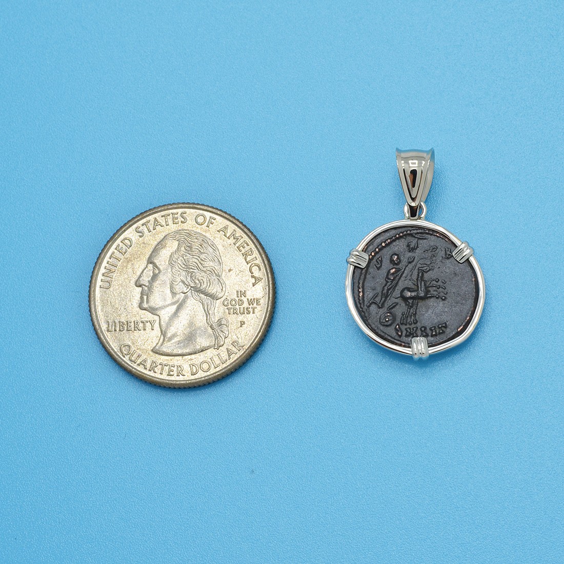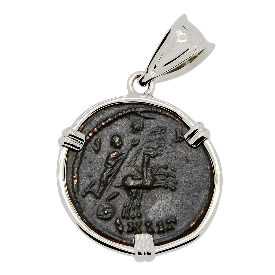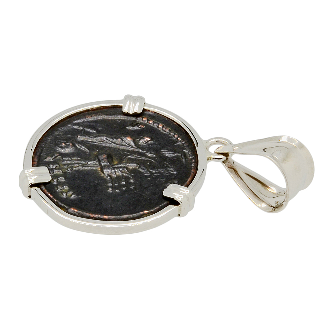 • Bronze Follis Coin in 14k White Gold Pendant, Weight 2.5g