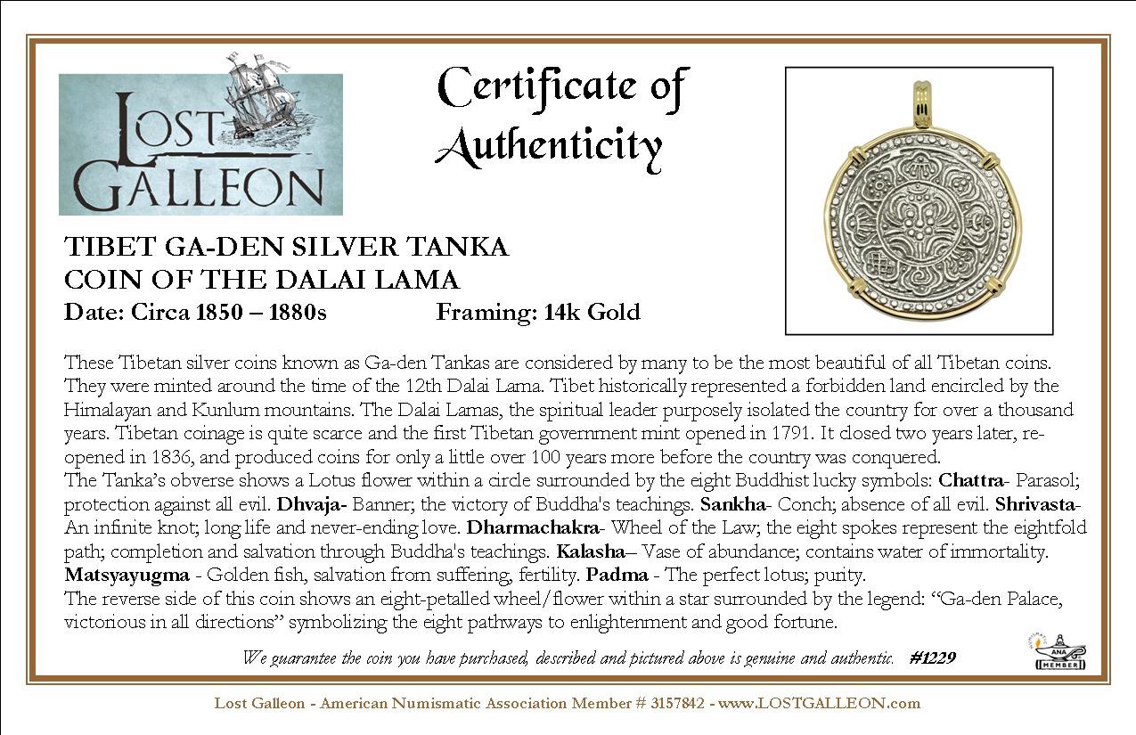 These Tibetan silver coins known as Ga-den Tankas are considered by many to be the most beautiful of all Tibetan coins. They were minted around the time of the 12th Dalai Lama. Tibet historically represented a forbidden land encircled by the Himalayan and Kunlum mountains. The Dalai Lamas, the spiritual leader purposely isolated the country for over a thousand years. Tibetan coinage is quite scarce and the first Tibetan government mint opened in 1791. It closed two years later, re-opened in 1836, and produced coins for only a little over 100 years more before the country was conquered.
