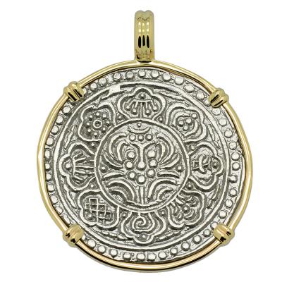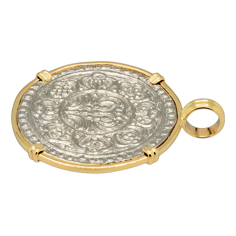 • Silver Coin in 14k Gold Pendant, Weight 6.3g