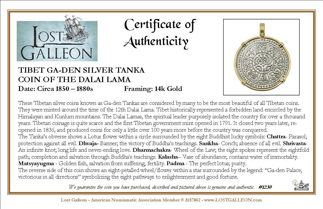 These Tibetan silver coins known as Ga-den Tankas are considered by many to be the most beautiful of all Tibetan coins. They were minted around the time of the 12th Dalai Lama. Tibet historically represented a forbidden land encircled by the Himalayan and Kunlum mountains. The Dalai Lamas, the spiritual leader purposely isolated the country for over a thousand years. Tibetan coinage is quite scarce and the first Tibetan government mint opened in 1791. It closed two years later, re-opened in 1836, and produced coins for only a little over 100 years more before the country was conquered.