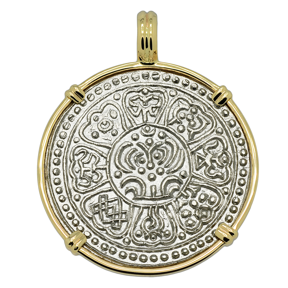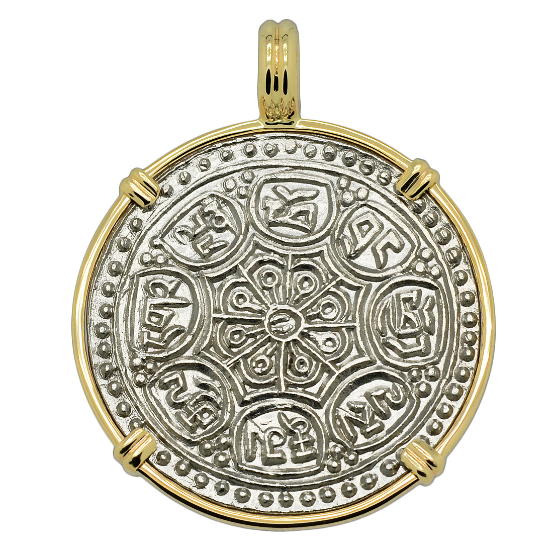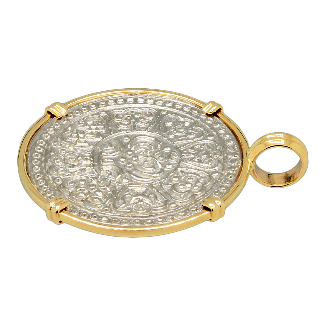 • Silver Coin in 14k Gold Pendant, Weight 6.6g