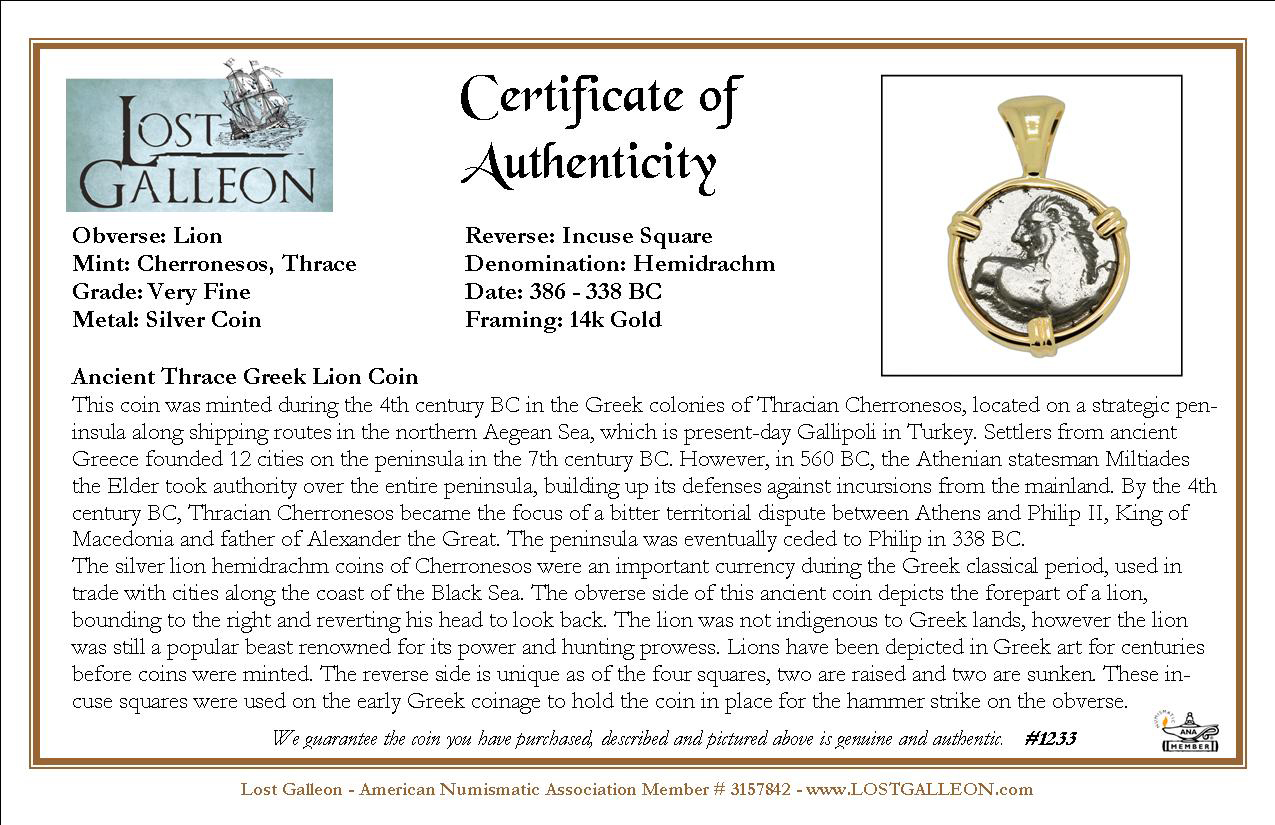 SOLD Greek Lion Hemidrachm Pendant. Please Explore Our Greek Pendants For Similar Items.