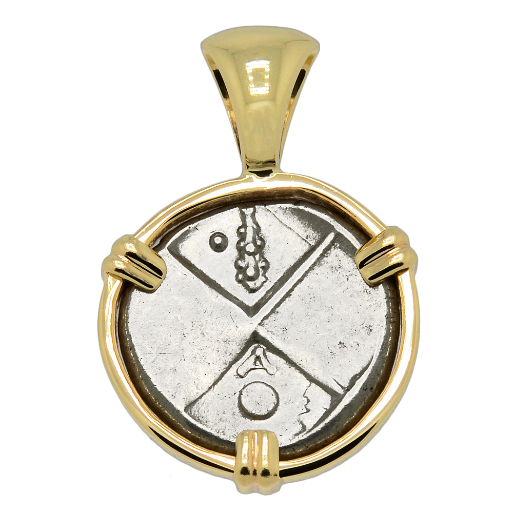 • Silver Hemidrachm Coin in 14k Gold Pendant, Weight 4.1g