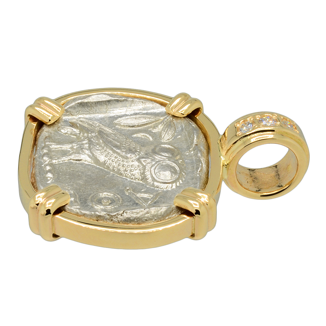 • Silver Tetradrachm Coin in 14k Gold Pendant with .15ct Diamonds, Weight 26.1g
