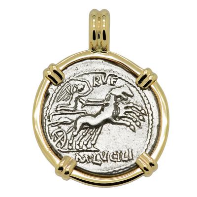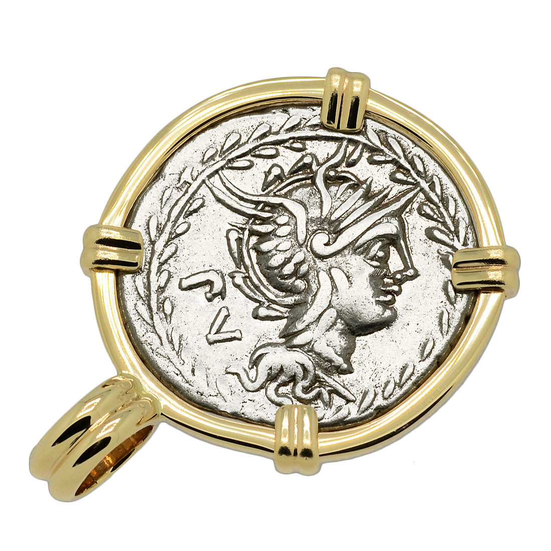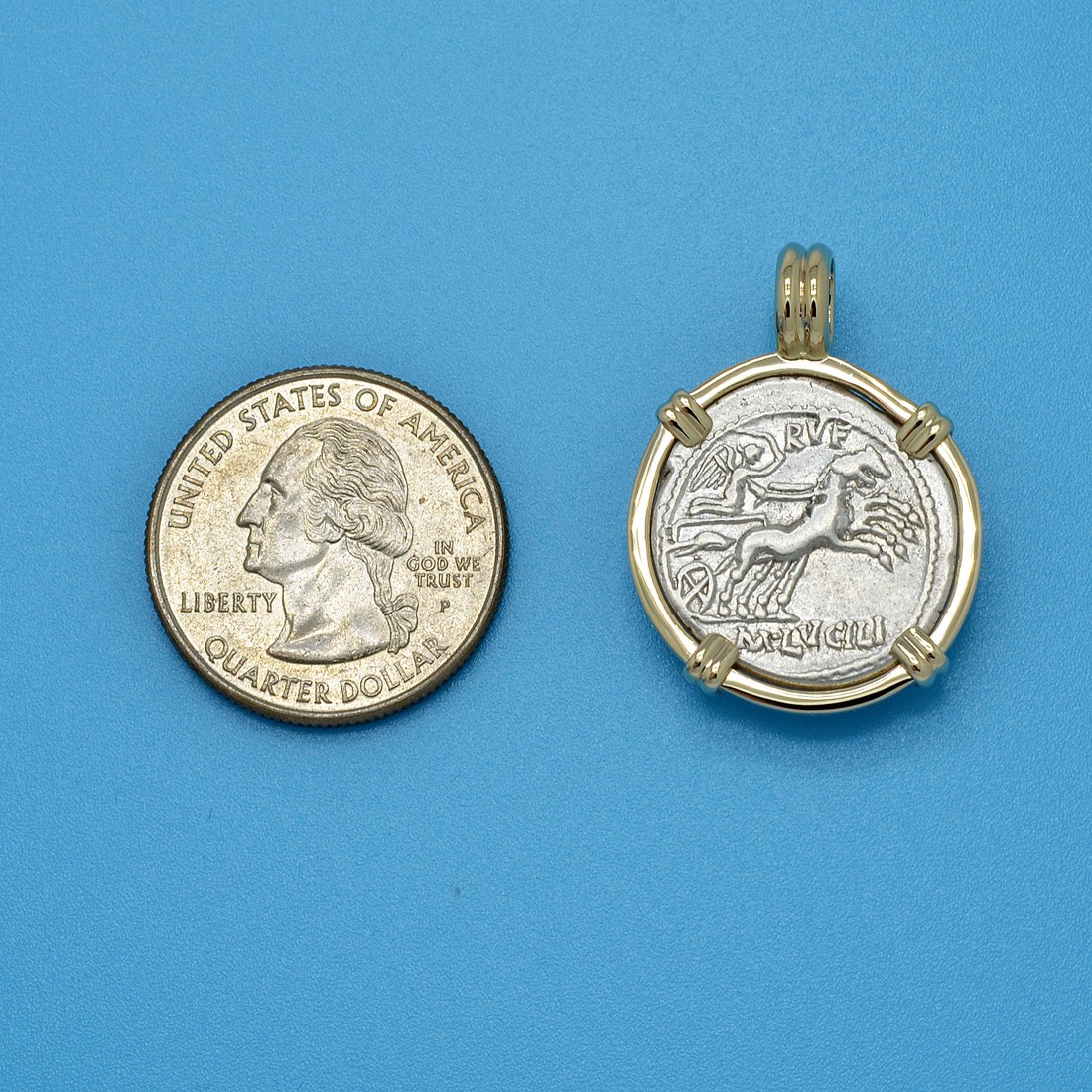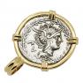 • Silver Denarius Coin in 14k Gold Pendant, Weight 7.15g