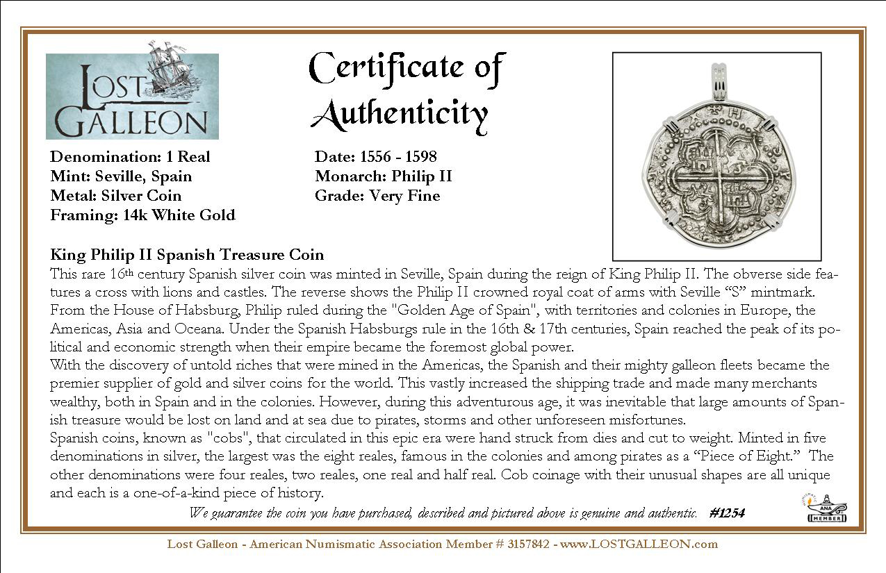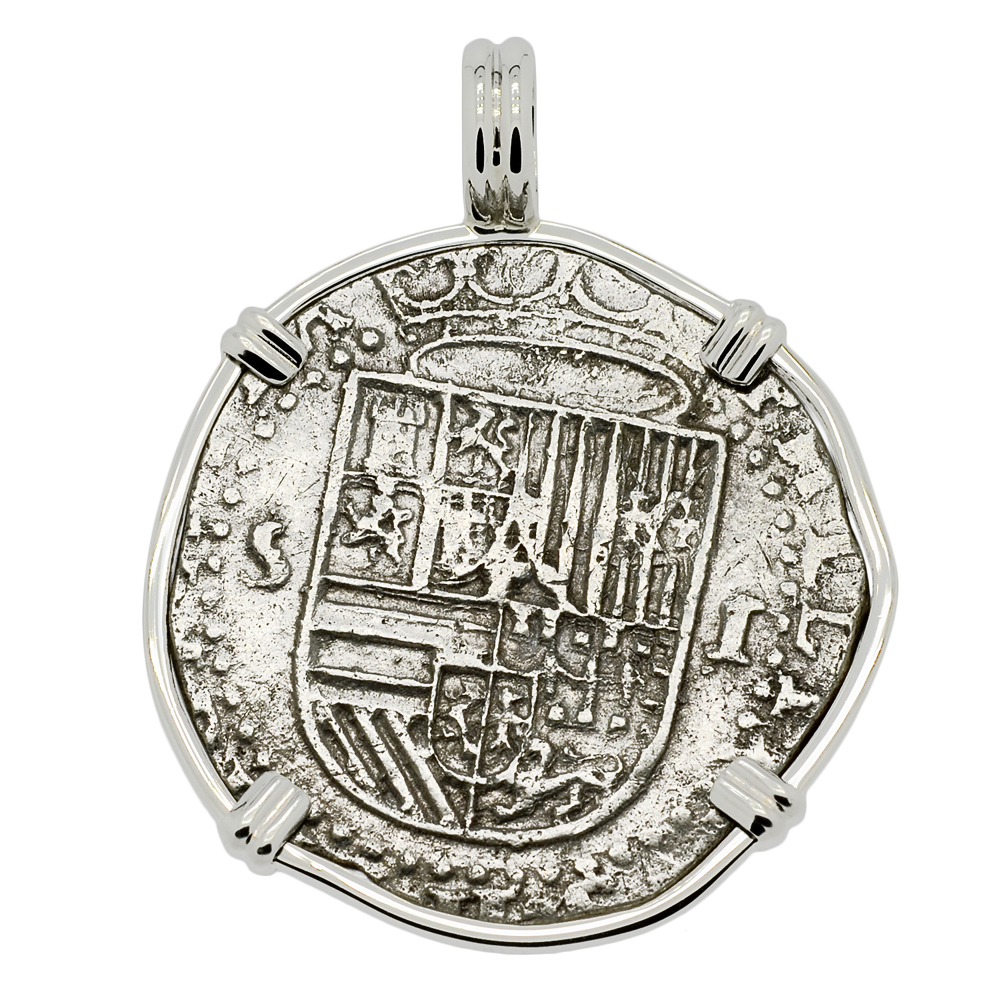 This rare 16th century Spanish silver coin was minted in Seville, Spain during the reign of King Philip II. The obverse side features a cross with lions and castles. The reverse shows the Philip II crowned royal coat of arms with Seville “S” mintmark. From the House of Habsburg, Philip ruled during the "Golden Age of Spain", with territories and colonies in Europe, the Americas, Asia and Oceana. Under the Spanish Habsburgs rule in the 16th & 17th centuries, Spain reached the peak of its political and economic strength when their empire became the foremost global power.