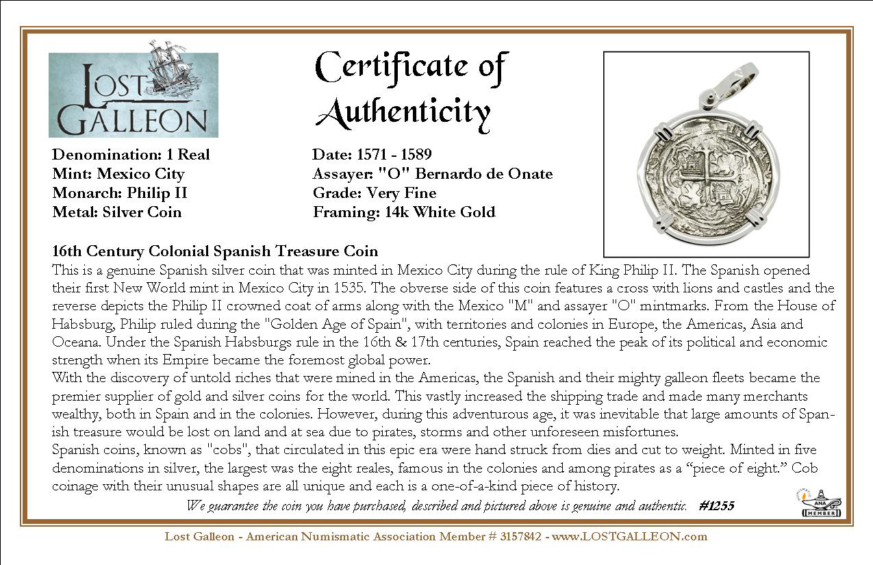 This is a genuine Spanish silver coin that was minted in Mexico City during the rule of King Philip II. The Spanish opened their first New World mint in Mexico City in 1535. The obverse side of this coin features a cross with lions and castles and the reverse depicts the Philip II crowned coat of arms along with the Mexico "M" and assayer "O" mintmarks. From the House of Habsburg, Philip ruled during the "Golden Age of Spain", with territories and colonies in Europe, the Americas, Asia and Oceana. Under the Spanish Habsburgs rule in the 16th & 17th centuries, Spain reached the peak of its political and economic strength when its Empire became the foremost global power.