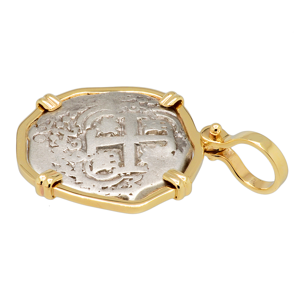 This is a genuine Spanish silver coin that was minted in the colonial South American mint of Potosi, Peru. In 1533, four decades after Columbus landed in the New World, Spanish conquistador Francisco Pizarro conquered the Inca Empire in Peru. Soon after, high in the Andes Mountains at Potosi, the Spanish discovered the richest silver deposits in the world and in 1575, they opened the Potosi mint.