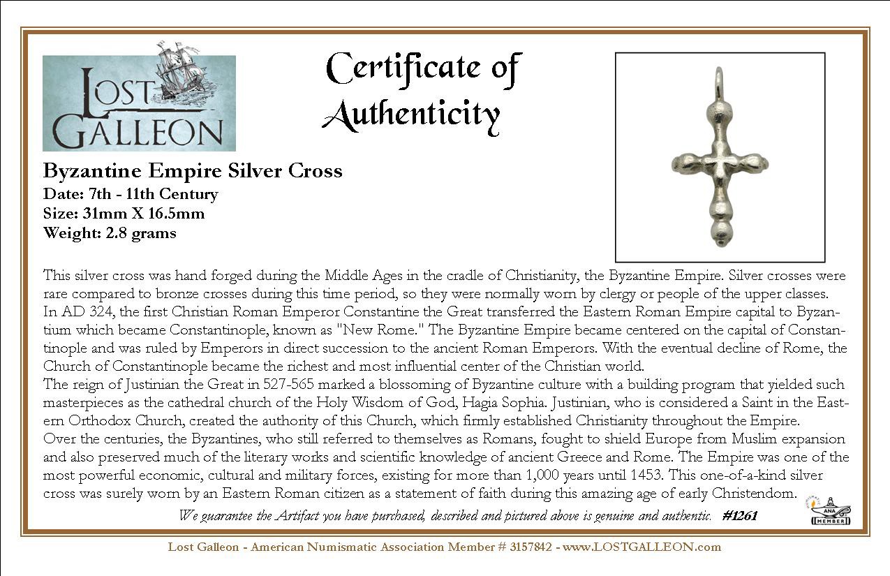Over the centuries, the Byzantines, who still referred to themselves as Romans, fought to shield Europe from Muslim expansion and also preserved much of the literary works and scientific knowledge of ancient Greece and Rome. The Empire was one of the most powerful economic, cultural and military forces, existing for more than 1,000 years until 1453. This one-of-a-kind silver cross was surely worn by an Eastern Roman citizen as a statement of faith during this amazing age of early Christendom.