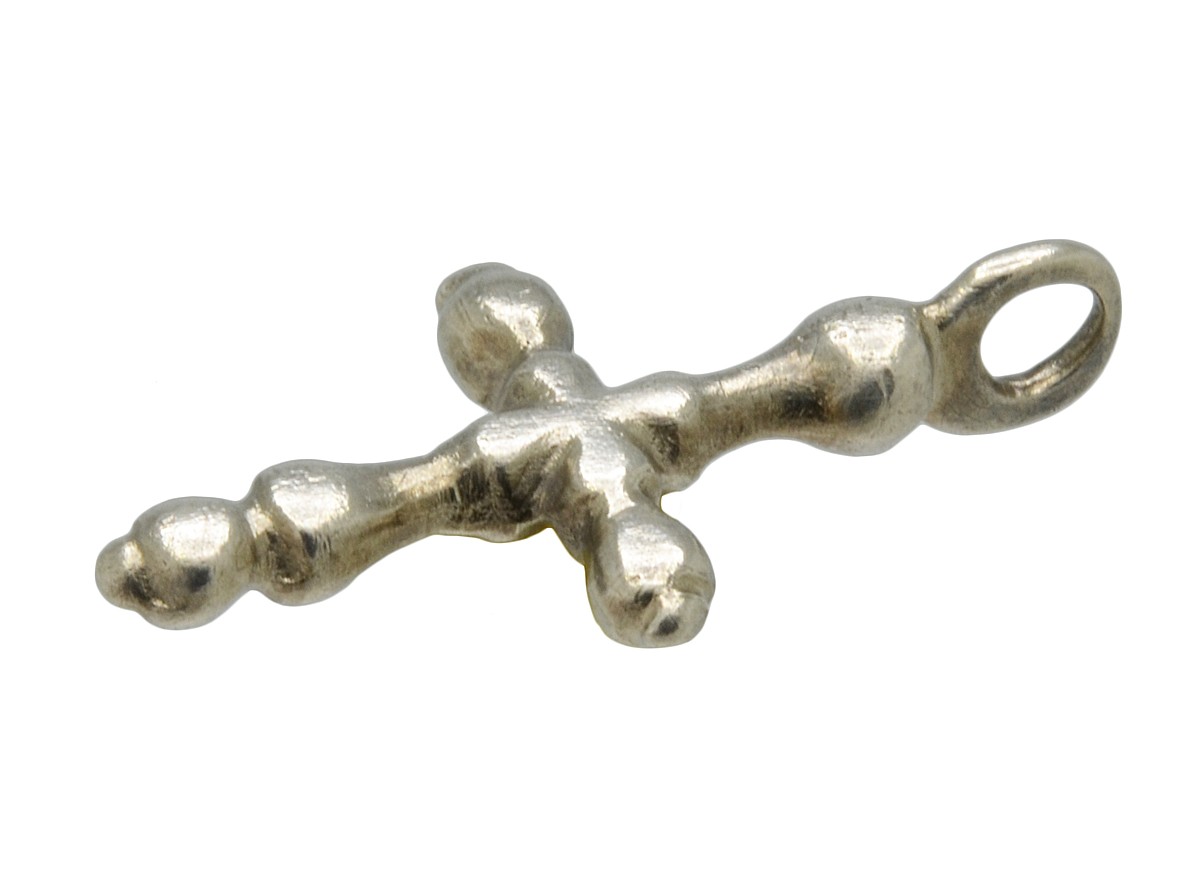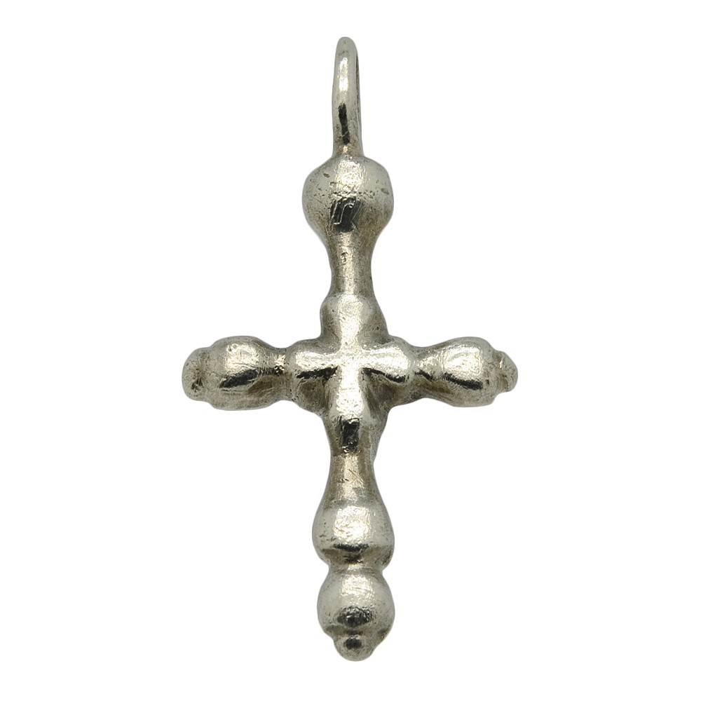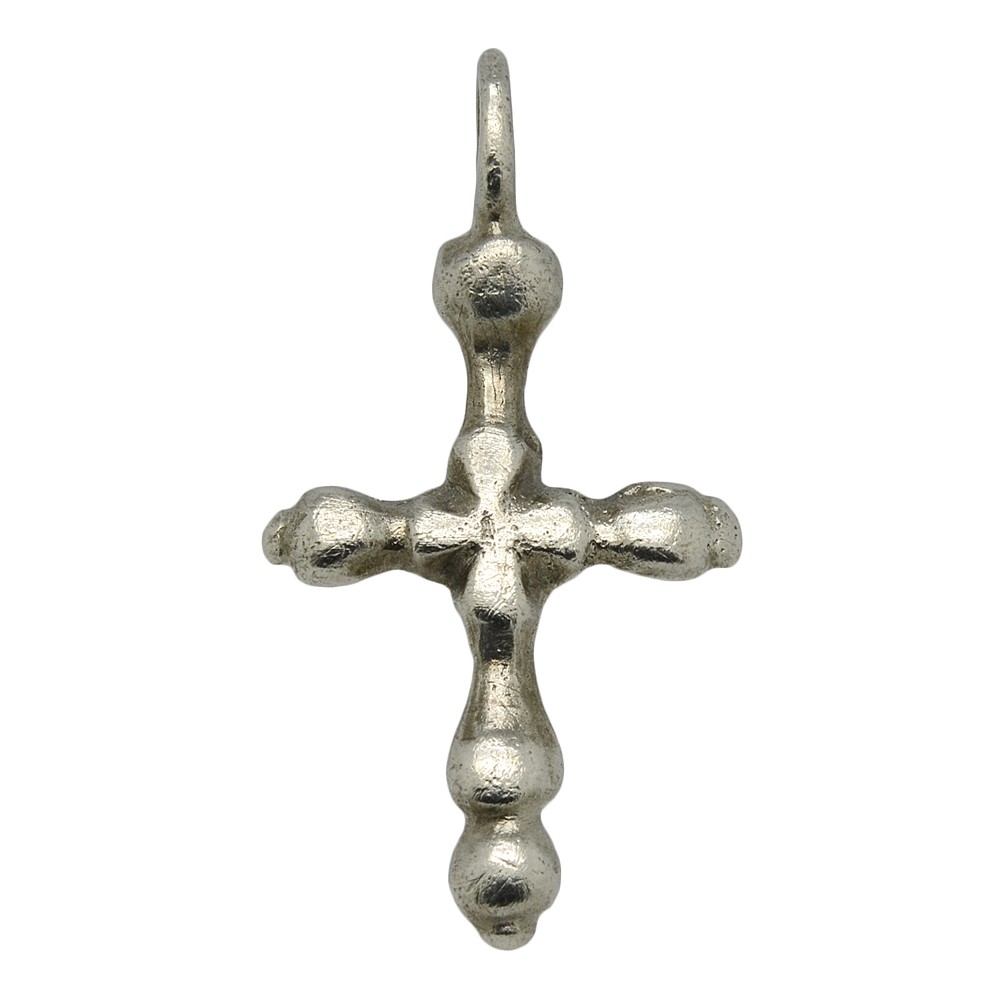 This silver cross was hand forged during the Middle Ages in the cradle of Christianity, the Byzantine Empire. Silver crosses were rare compared to bronze crosses during this time period, so they were normally worn by clergy or people of the upper classes.