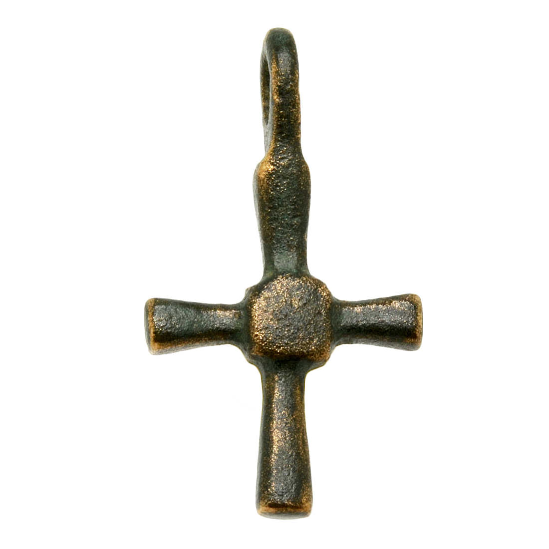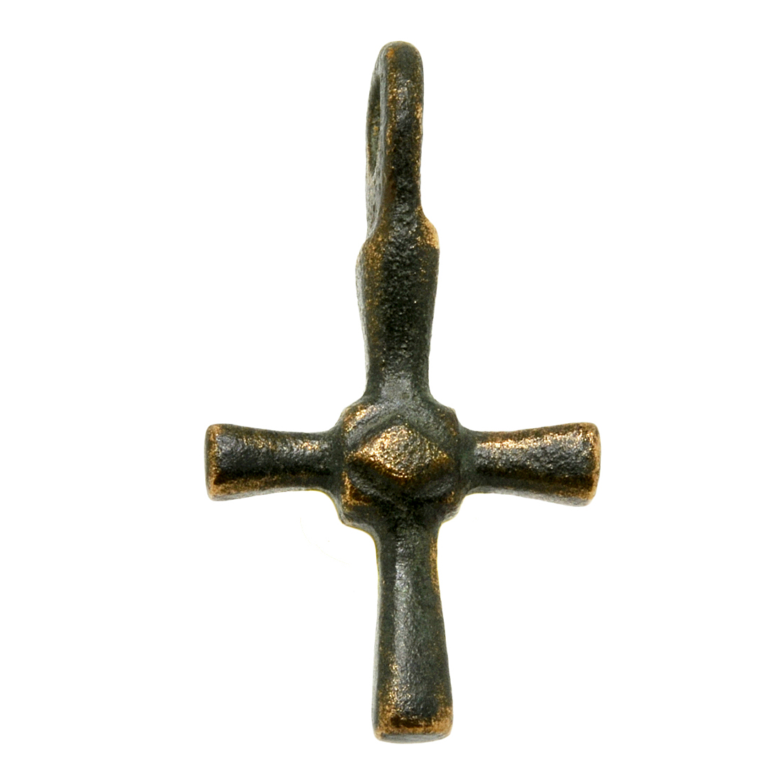 Over the centuries, the Byzantines, who still referred to themselves as Romans, fought to shield Europe from Muslim expansion and they also preserved much of the literary works and scientific knowledge of ancient Greece and Rome. The Empire was one of the most powerful economic, cultural and military forces in Europe and Asia Minor, existing for more than 1,000 years until 1453. This one-of-a-kind bronze cross was surely worn by an Eastern Roman citizen as a statement of faith during this amazing age of early Christendom.