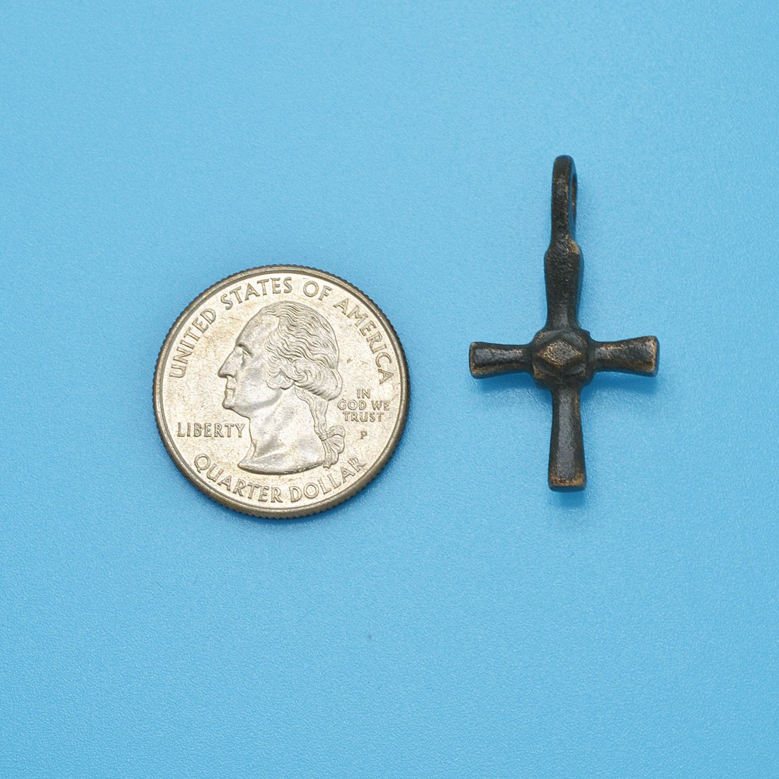 This bronze cross was hand forged during the early Middle Ages in the cradle of Christianity, the Byzantine Empire. In AD 324, the first Christian Roman Emperor Constantine the Great transferred the Eastern Roman Empire capital to Byzantium, which became Constantinople, known as "New Rome." The Byzantine Empire became centered on the capital of Constantinople and was ruled by Emperors in direct succession to the ancient Roman Emperors. With the eventual decline of Rome, the Church of Constantinople became the richest and most influential center of the Christian world.
